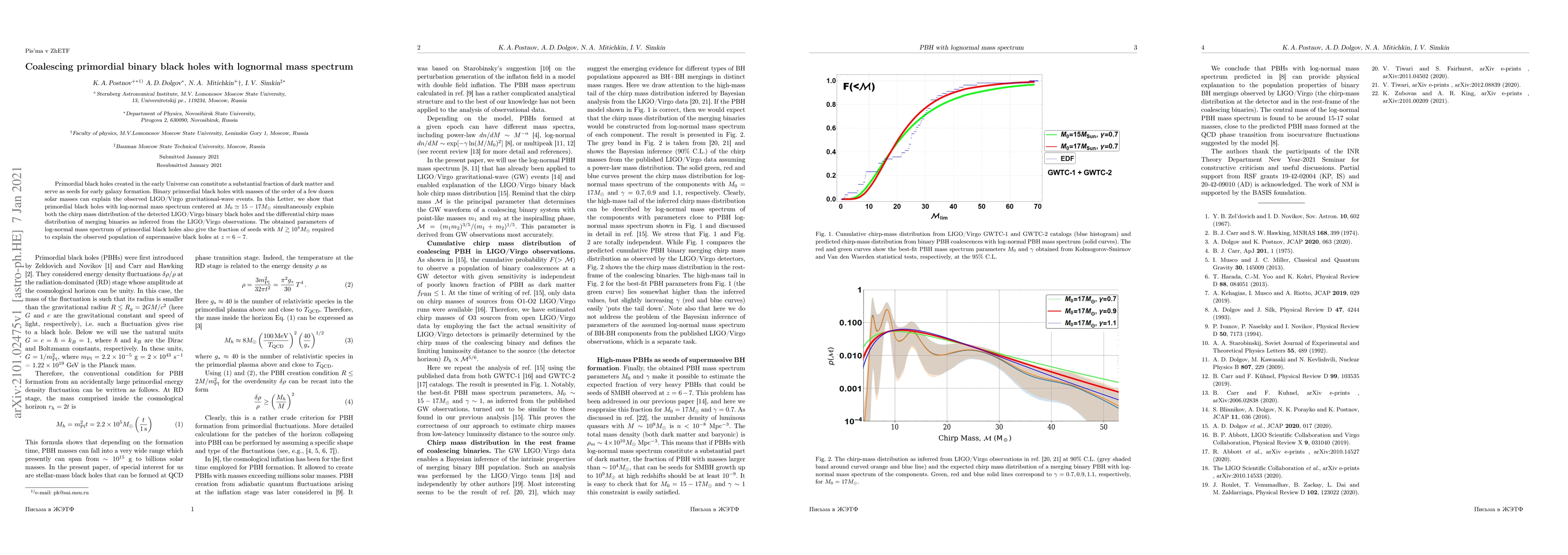 This paper demonstrates that primordial black holes with a log-normal mass spectrum centered around $M_0\simeq 15-17 M_\odot$ can explain both the LIGO/Virgo gravitational-wave detections and the population of supermassive black holes at high redshifts, supporting their role in early galaxy formation. The study finds that such a mass spectrum aligns with the observed chirp mass distribution of merging binaries.