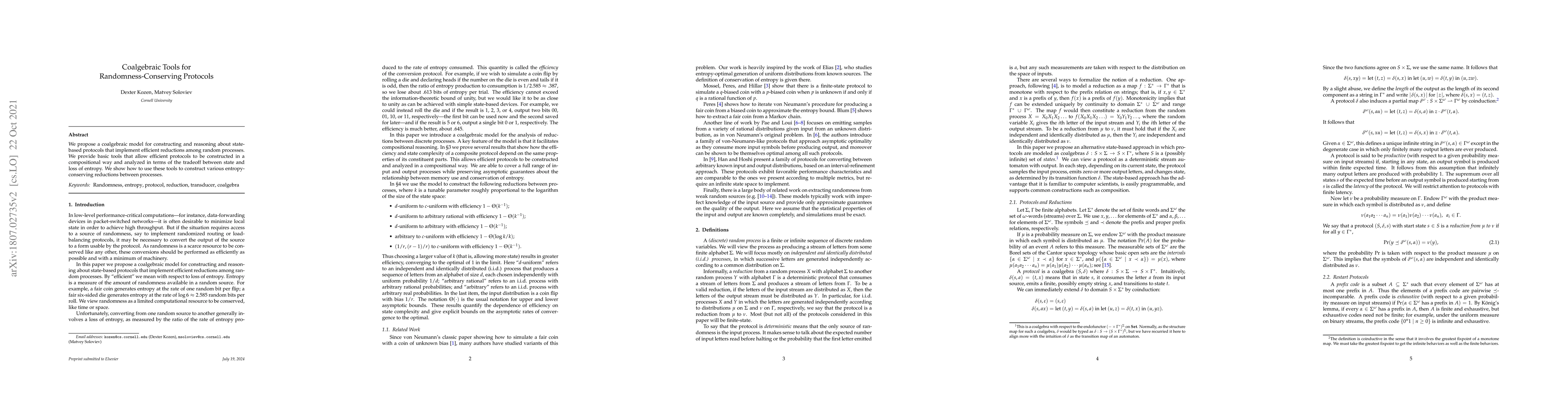 We propose a coalgebraic model for constructing and reasoning about state-based protocols that implement efficient reductions among random processes. We provide basic tools that allow efficient protocols to be constructed in a compositional way and analyzed in terms of the tradeoff between state and loss of entropy. We show how to use these tools to construct various entropy-conserving reductions between processes.