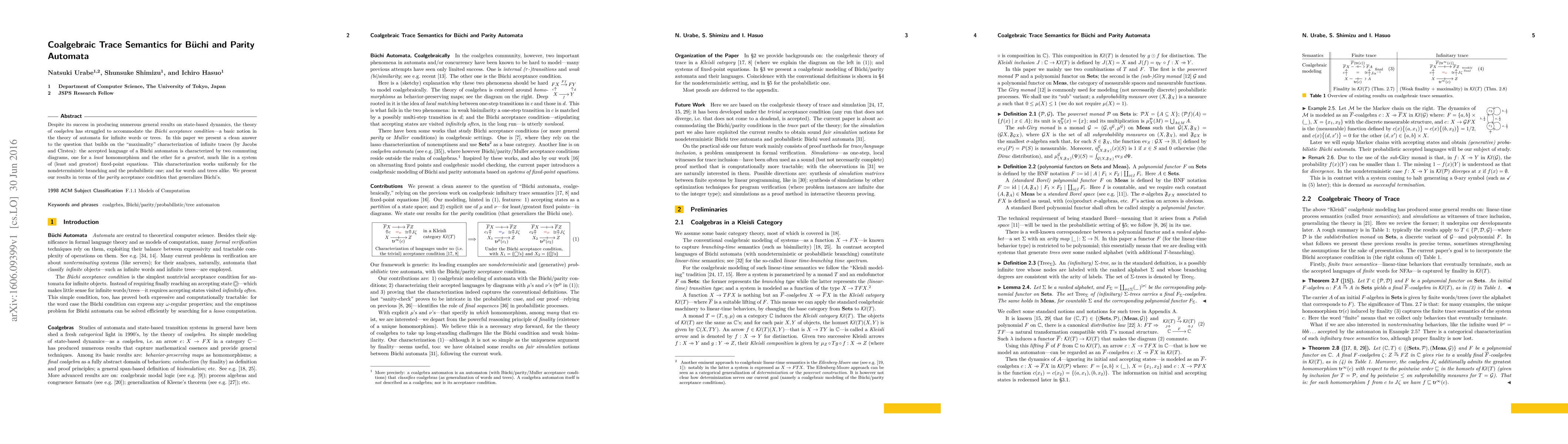 Despite its success in producing numerous general results on state-based dynamics, the theory of coalgebra has struggled to accommodate the Buechi acceptance condition---a basic notion in the theory of automata for infinite words or trees. In this paper we present a clean answer to the question that builds on the "maximality" characterization of infinite traces (by Jacobs and Cirstea): the accepted language of a Buechi automaton is characterized by two commuting diagrams, one for a least homomorphism and the other for a greatest, much like in a system of (least and greatest) fixed-point equations. This characterization works uniformly for the nondeterministic branching and the probabilistic one; and for words and trees alike. We present our results in terms of the parity acceptance condition that generalizes Buechi's.