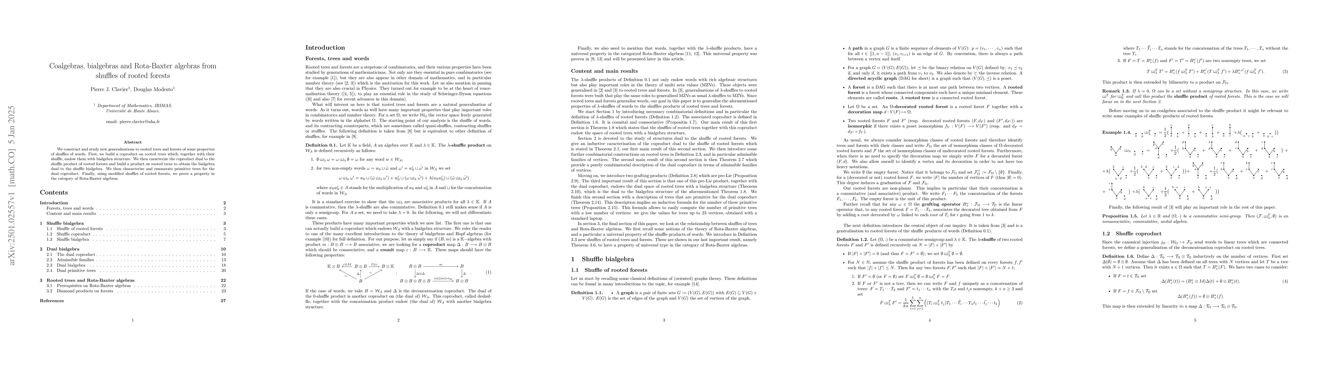 This paper constructs bialgebra structures on rooted trees and forests using shuffles, explores their dual coproducts, and enumerates primitive trees. It also establishes a Rota-Baxter algebra property through modified shuffles of rooted forests.