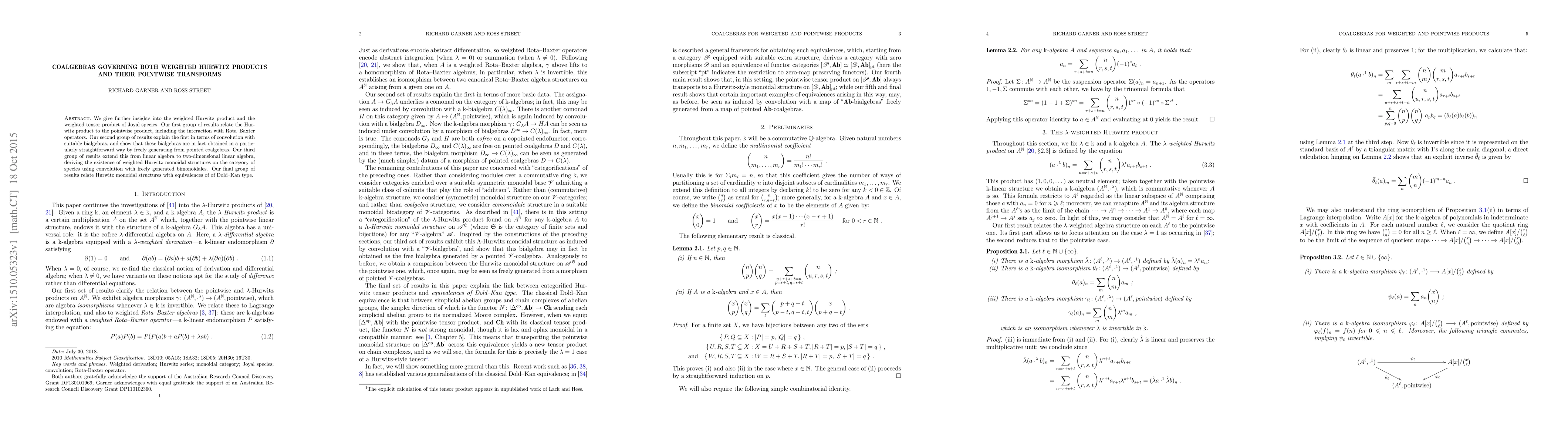 We give further insights into the weighted Hurwitz product and the weighted tensor product of Joyal species. Our first group of results relate the Hurwitz product to the pointwise product, including the interaction with Rota--Baxter operators. Our second group of results explain the first in terms of convolution with suitable bialgebras, and show that these bialgebras are in fact obtained in a particularly straightforward way by freely generating from pointed coalgebras. Our third group of results extend this from linear algebra to two-dimensional linear algebra, deriving the existence of weighted Hurwitz monoidal structures on the category of species using convolution with freely generated bimonoidales. Our final group of results relate Hurwitz monoidal structures with equivalences of of Dold--Kan type.
