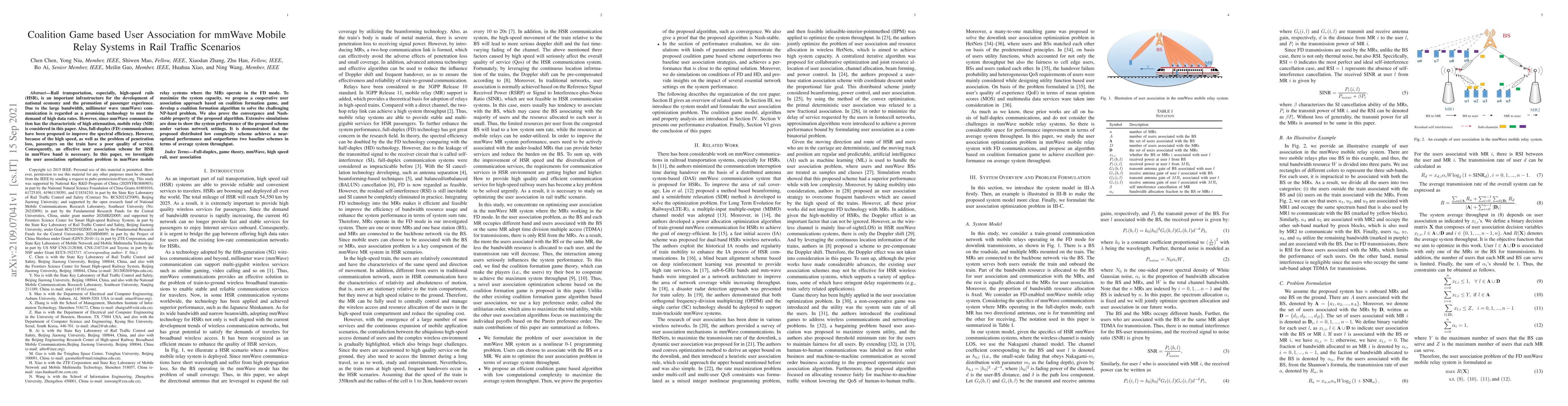This paper proposes a coalition game-based user association approach for mmWave mobile relay systems in high-speed rail scenarios to maximize system capacity. The developed coalition formation algorithm effectively addresses the NP-hard problem, demonstrating convergence and Nash stability, and outperforms baseline schemes in terms of average system throughput.