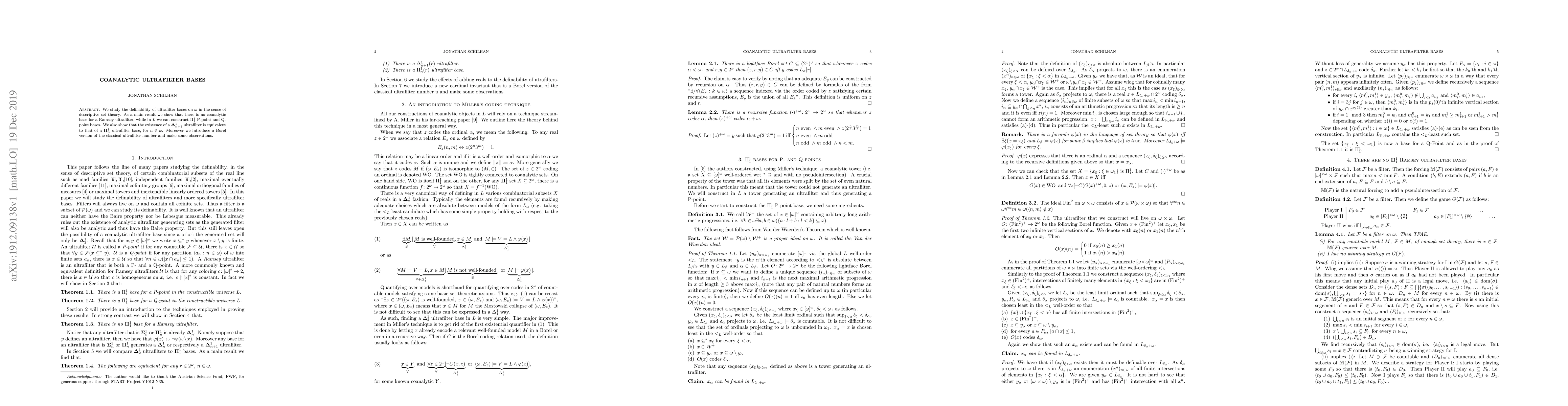 This paper investigates the definability of ultrafilter bases on $\omega$ within descriptive set theory, proving the absence of coanalytic bases for Ramsey ultrafilters. It also constructs $\Pi^1_1$ P-point and Q-point bases in $L$ and establishes equivalences between $\mathbf\Delta^1_{n+1}$ and $\mathbf\Pi^1_n$ ultrafilter bases for natural numbers $n$.