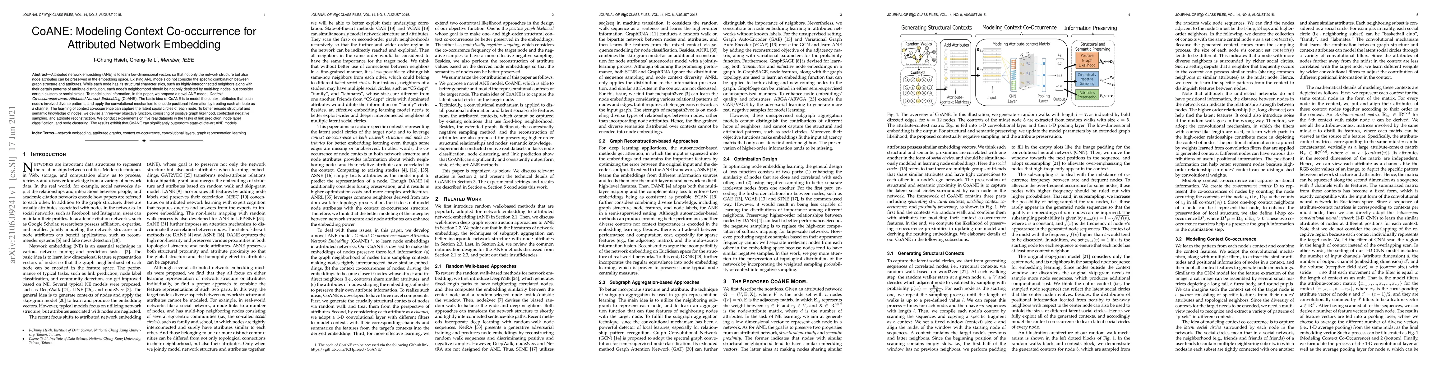 CoANE introduces a context co-occurrence-aware convolutional mechanism for attributed network embedding, effectively modeling latent social circles in the network.