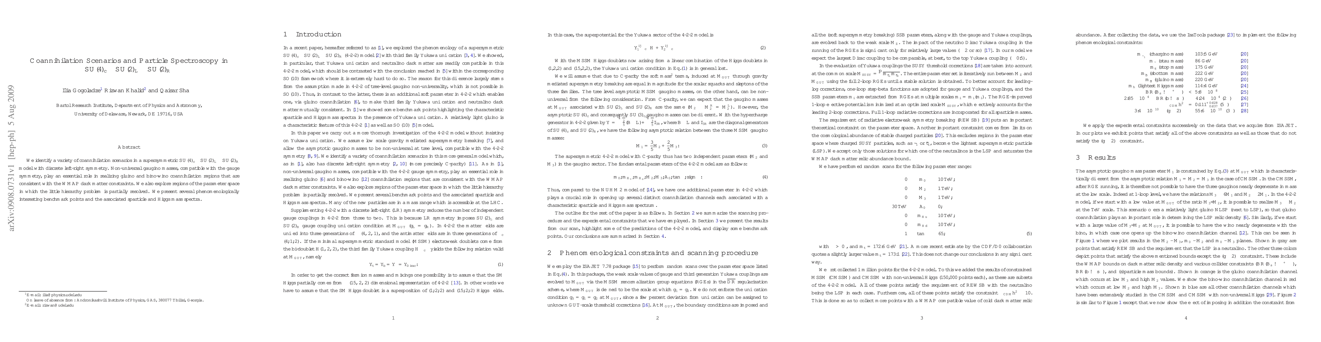 This paper explores coannihilation scenarios in a supersymmetric SU(4)_c x SU(2)_L x SU(2)_R model, focusing on gluino and bino-wino coannihilations that meet dark matter constraints. It identifies benchmark points that resolve the little hierarchy problem and presents detailed particle spectra.