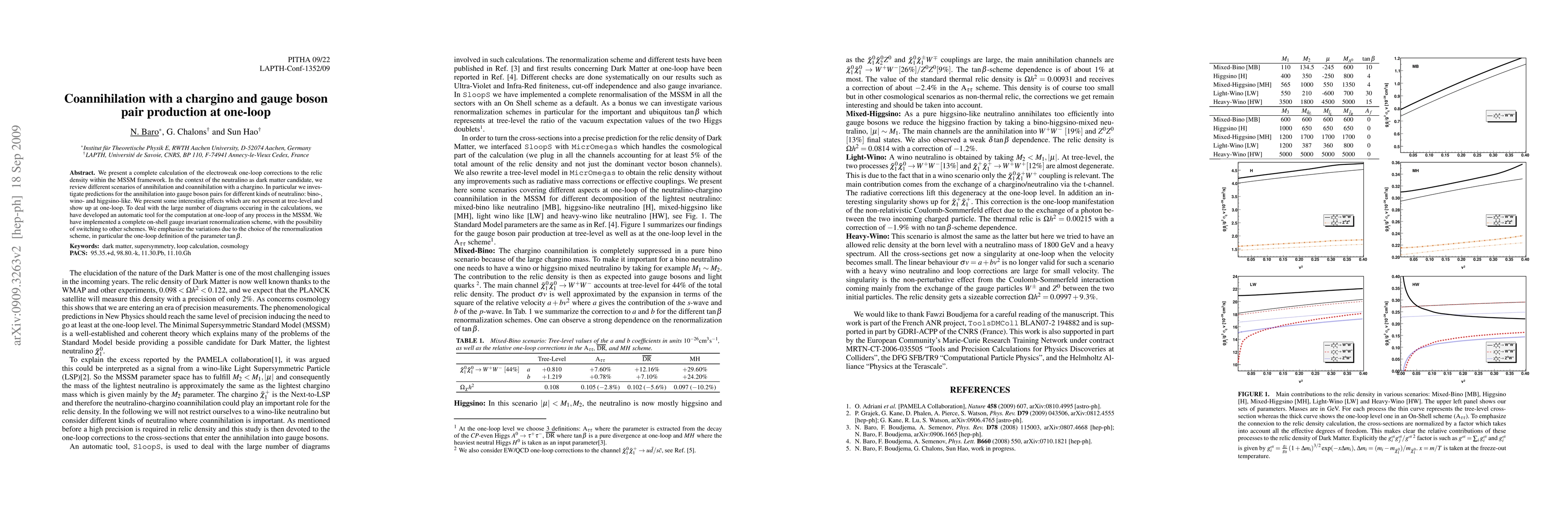 We present a complete calculation of the electroweak one-loop corrections to the relic density within the MSSM framework. In the context of the neutralino as dark matter candidate, we review different scenarios of annihilation and coannihilation with a chargino. In particular we investigate predictions for the annihilation into gauge boson pairs for different kinds of neutralino: bino-, wino- and higgsino-like. We present some interesting effects which are not present at tree-level and show up at one-loop. To deal with the large number of diagrams occuring in the calculations, we have developed an automatic tool for the computation at one-loop of any process in the MSSM. We have implemented a complete on-shell gauge invariant renormalization scheme, with the possibility of switching to other schemes. We emphasize the variations due to the choice of the renormalization scheme, in particular the one-loop definition of the parameter tan(beta).