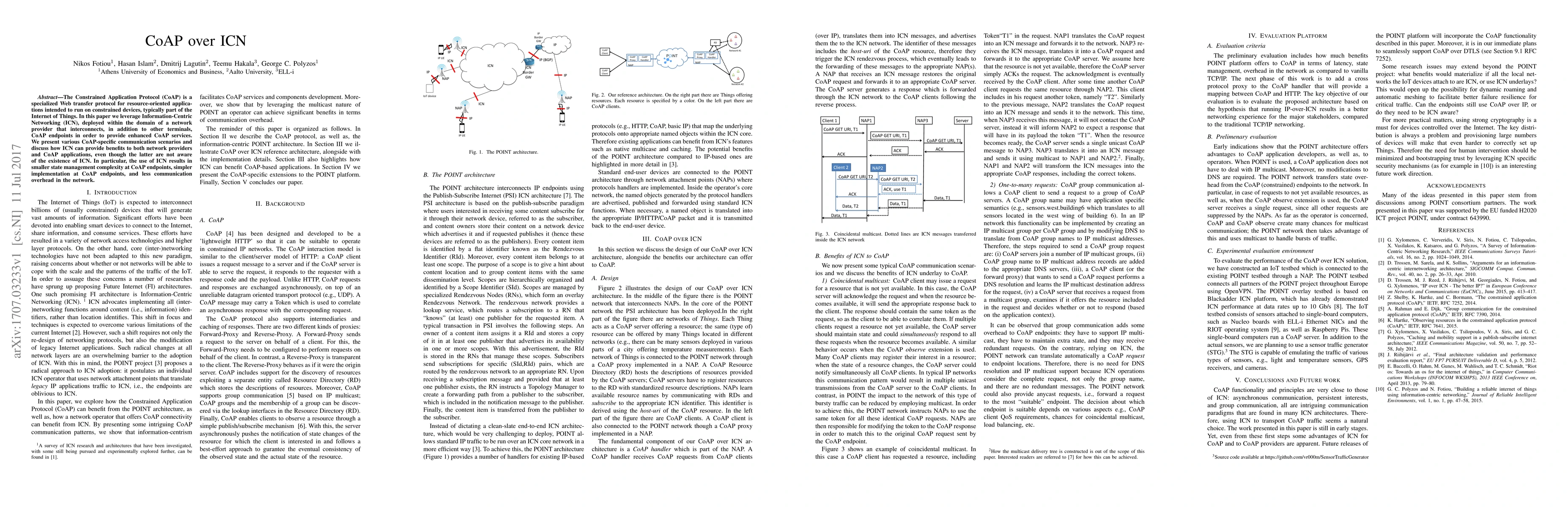 This paper explores integrating the Constrained Application Protocol (CoAP) with Information-Centric Networking (ICN) to enhance CoAP services for IoT devices. It demonstrates that ICN can reduce state management complexity, simplify CoAP endpoint implementation, and minimize network communication overhead.