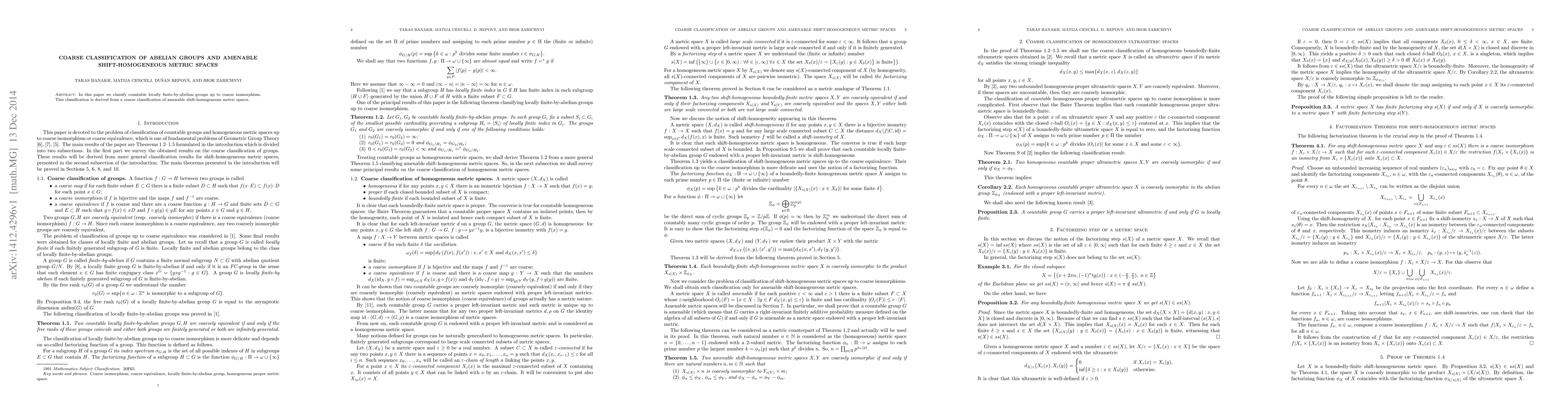 Summary: The paper classifies countable locally finite-by-abelian groups via coarse isomorphism, utilizing a coarse classification of amenable shift-homogeneous metric spaces as a foundational approach.