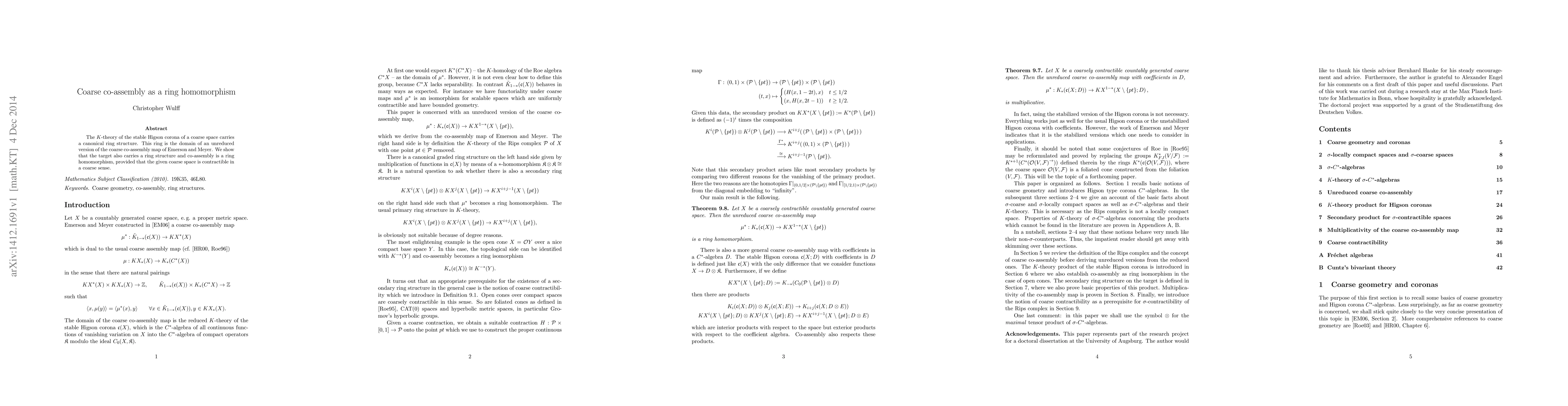 This paper demonstrates that the coarse co-assembly map is a ring homomorphism when applied to the $K$-theory of the stable Higson corona of a contractible coarse space, establishing a canonical ring structure on both the domain and target.