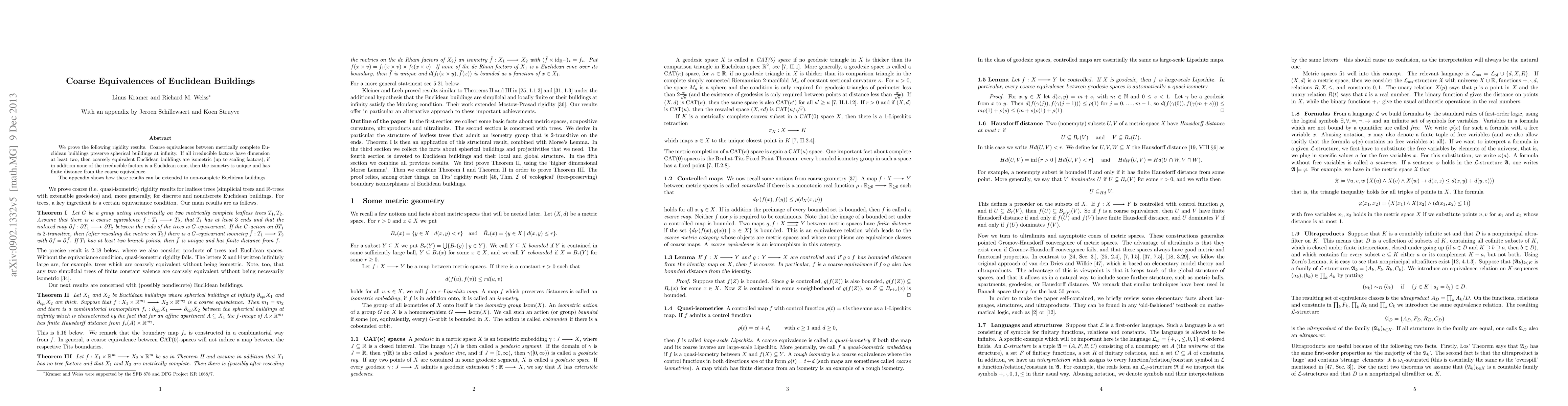 This paper proves that coarse equivalences between Euclidean buildings preserve spherical buildings at infinity and establishes isometry (up to scaling) when all irreducible factors have dimension at least two, with unique isometry of finite distance when no factor is a Euclidean cone.