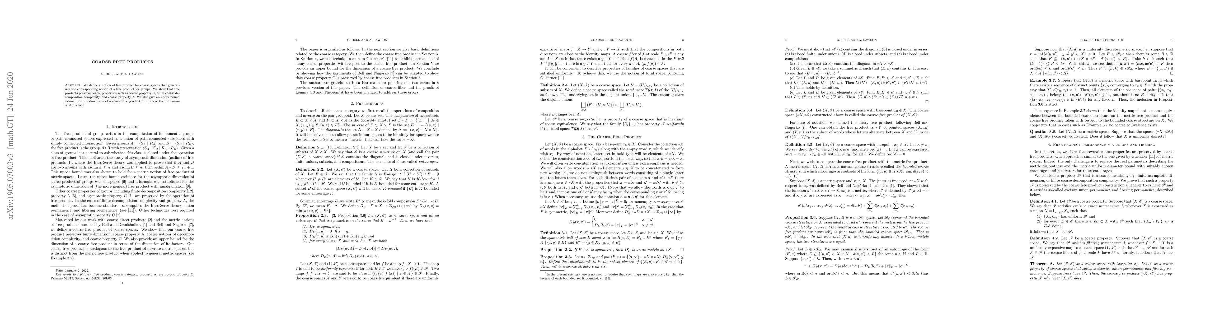 This paper introduces a generalized free product for coarse spaces, demonstrating that it preserves key coarse properties and provides an upper bound on the dimension of the product in terms of the dimensions of its components.