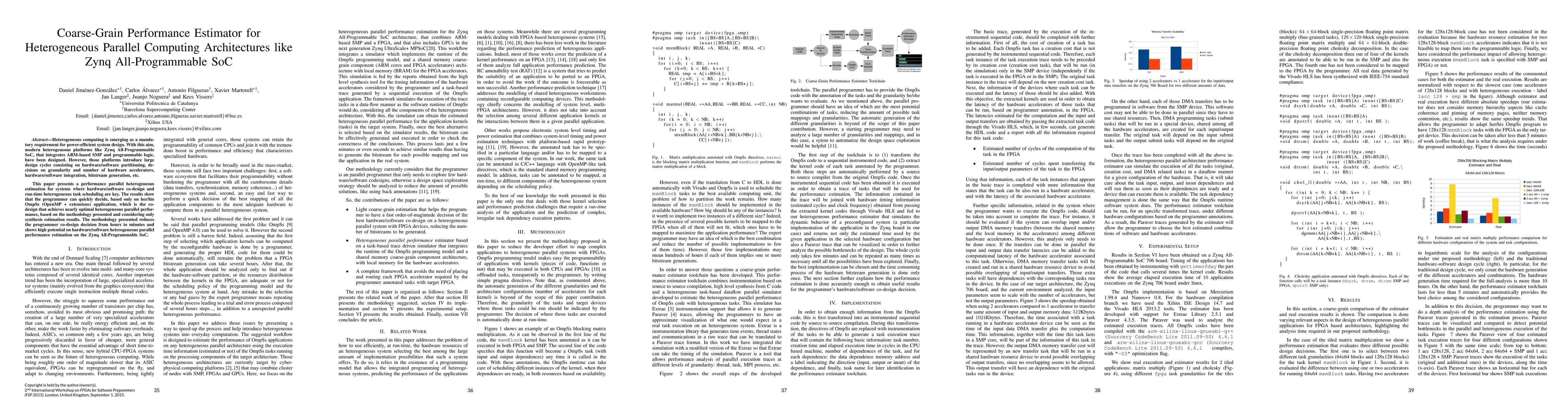 This paper introduces a coarse-grain performance estimator for optimizing heterogeneous parallel computing on Zynq All-Programmable SoCs, significantly reducing co-design decision time from hours to minutes and enabling near-optimal performance based on OmpSs application synthesis.