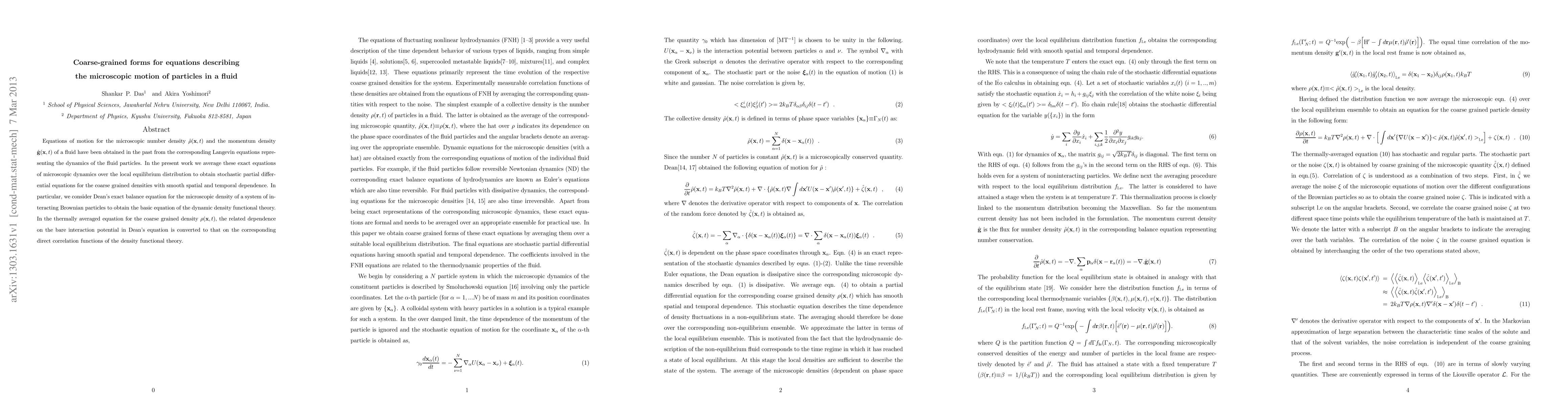 This paper derives stochastic partial differential equations for coarse-grained densities from averaged microscopic dynamics equations, specifically using Dean's exact balance equation for interacting Brownian particles. The resulting equations relate the coarse-grained density to the direct correlation functions of dynamic density functional theory.