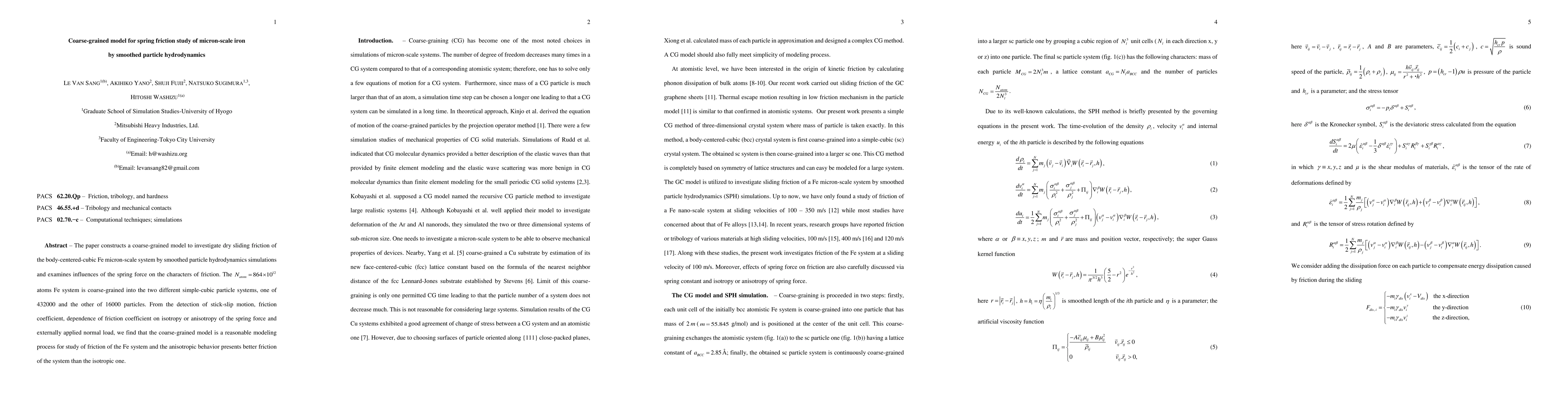 This paper develops a coarse-grained model using smoothed particle hydrodynamics to study dry sliding friction in micron-scale iron systems. It finds that the anisotropic spring force leads to better friction characteristics compared to isotropic forces, indicating the model's effectiveness for friction analysis.