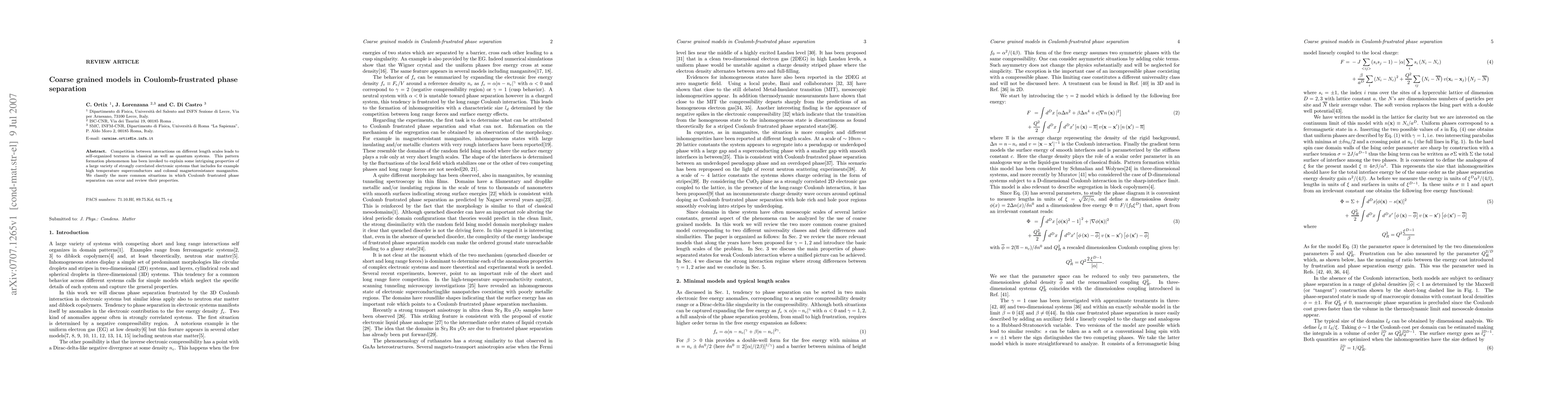 Competition between interactions on different length scales leads to self-organized textures in classical as well as quantum systems. This pattern formation phenomenon has been invoked to explain some intriguing properties of a large variety of strongly correlated electronic systems that includes for example high temperature superconductors and colossal magnetoresistance manganites. We classify the more common situations in which Coulomb frustrated phase separation can occur and review their properties.