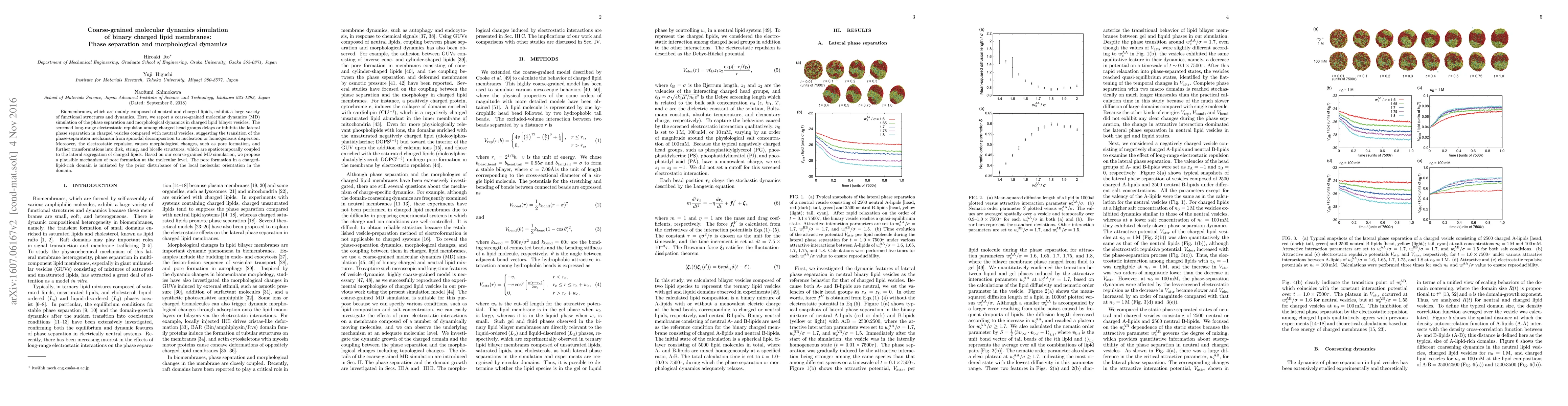 This paper uses coarse-grained molecular dynamics simulations to study the phase separation and morphological dynamics in charged lipid bilayer vesicles. The simulations reveal that electrostatic repulsion delays phase separation and induces morphological changes, including pore formation and transformations into disk, string, and bicelle structures, driven by the segregation of charged lipids.