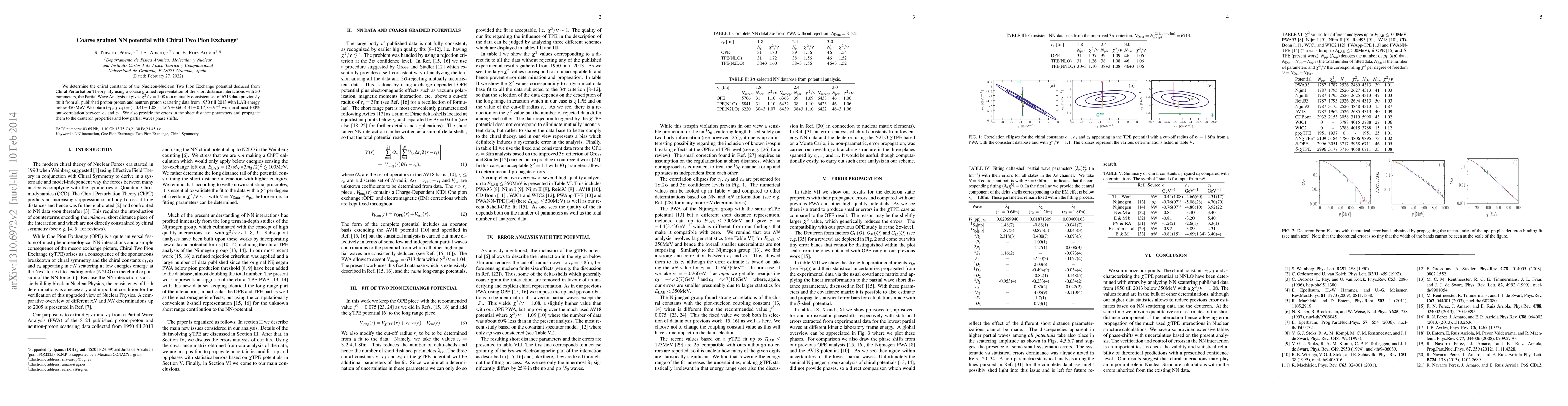 This paper determines chiral constants for the Nucleon-Nucleon Two Pion Exchange potential using Chiral Perturbation Theory and a coarse-grained representation, achieving a Partial Wave Analysis fit with chi^2/dof = 1.1. The derived constants (c1, c3, c4) show a nearly 100% anti-correlation between c1 and c3.