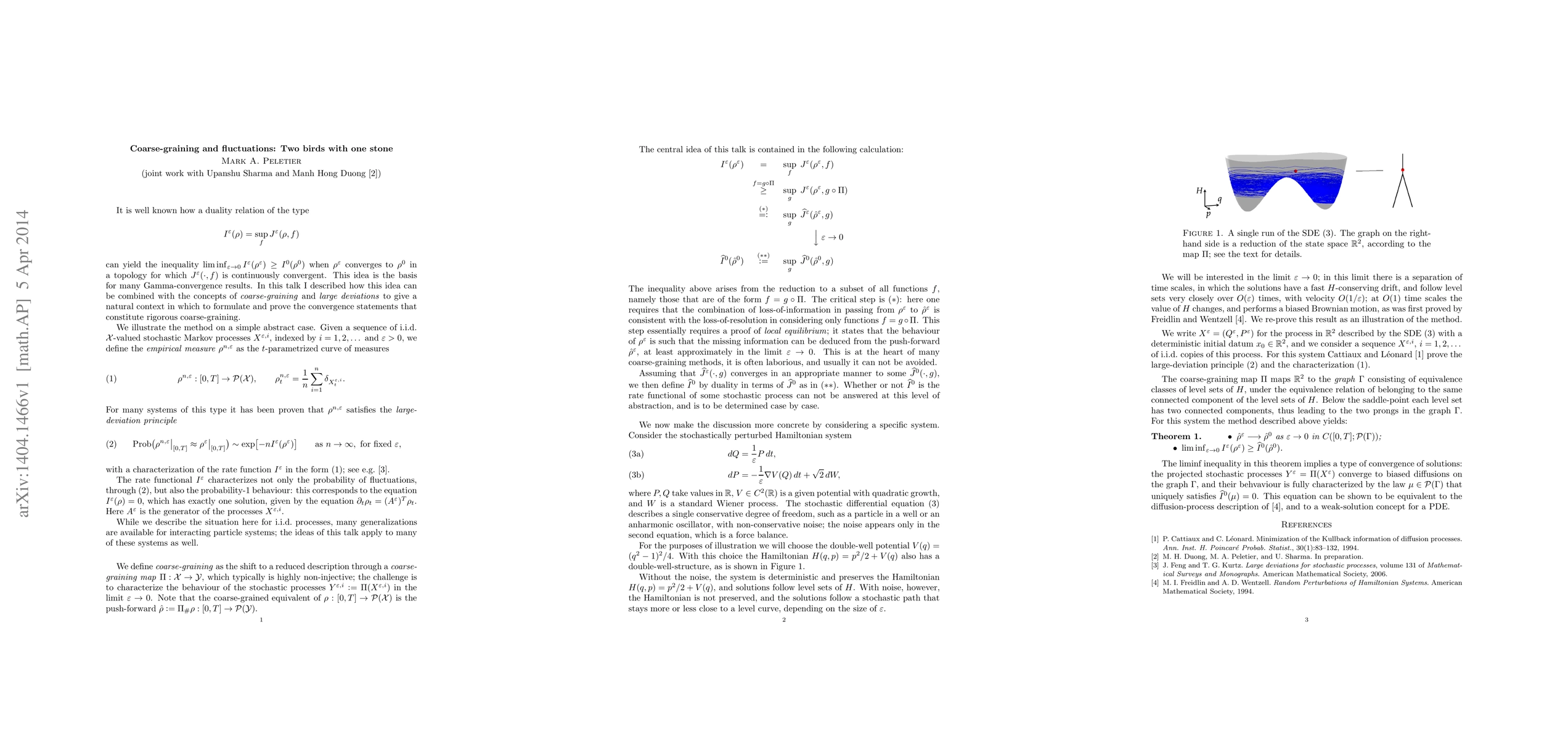 This paper demonstrates a connection between large-deviation principles and coarse-graining, proposing a method to achieve both through the variational form of the large-deviation functional, thus providing a unified approach to the two concepts.