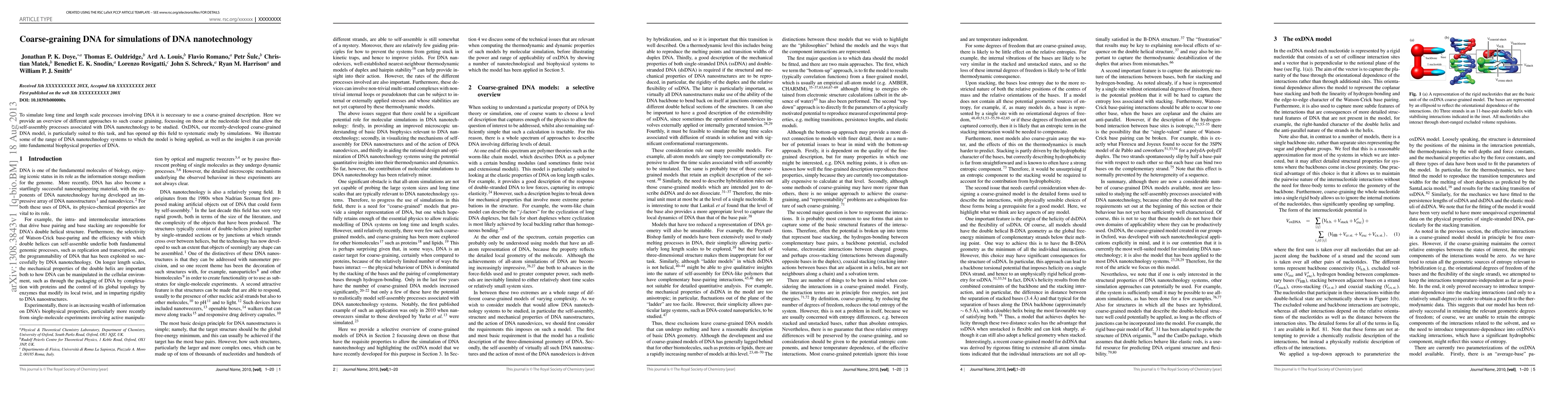This paper reviews various coarse-graining methods for simulating DNA nanotechnology, focusing on nucleotide-level models that facilitate the study of self-assembly processes. The OxDNA model is highlighted as particularly effective for these simulations, providing insights into DNA's fundamental biophysical properties and enabling the study of diverse DNA nanotechnology systems.