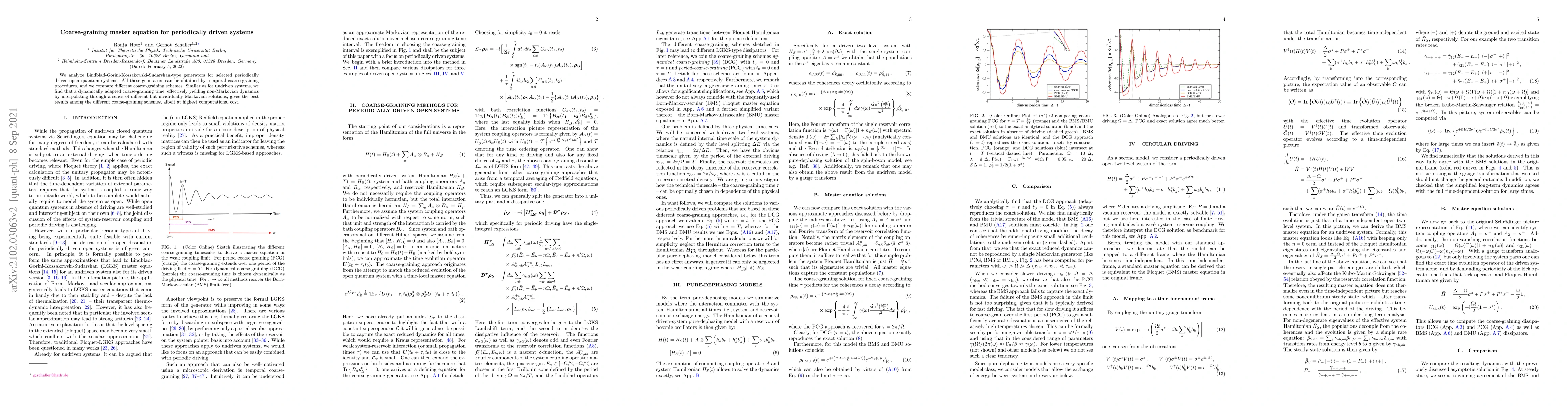This research examines various coarse-graining methods for periodically driven quantum systems, finding that dynamically adapted coarse-graining times produce the most accurate results, despite higher computational costs, by interpolating through a series of Markovian solutions to yield non-Markovian dynamics.