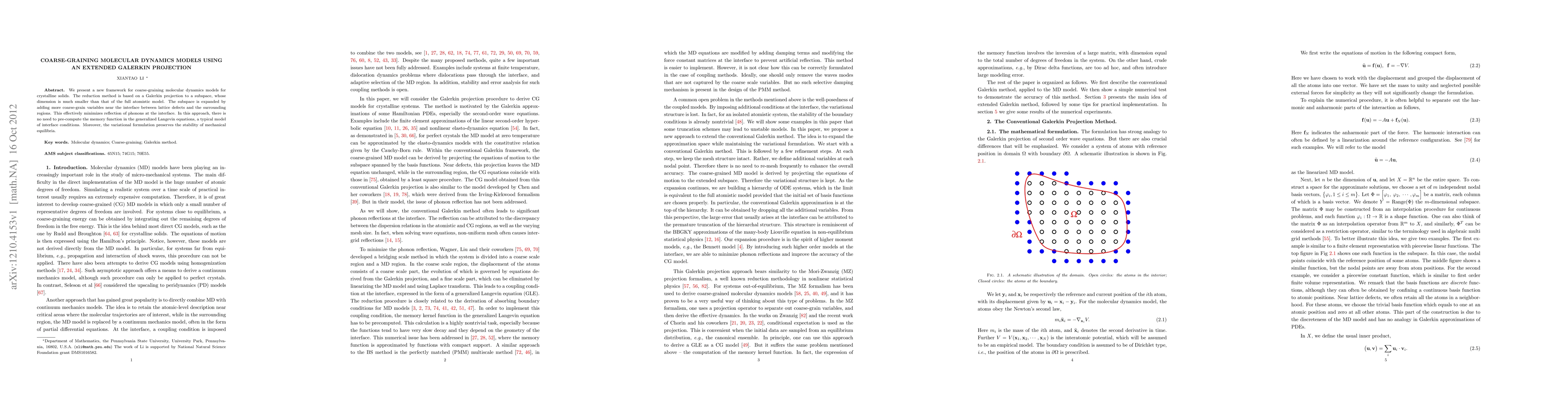 We present a new framework for coarse-graining molecular dynamics models for crystalline solids. The reduction method is based on a Galerkin projection to a subspace, whose dimension is much smaller than that of the full atomistic model. The subspace is expanded by adding more coarse-grain variables near the interface between lattice defects and the surrounding regions. This effectively minimizes reflection of phonons at the interface. In this approach, there is no need to pre-compute the memory function in the generalized Langevin equations, a typical model of interface conditions. Moreover, the variational formulation preserves the stability of mechanical equilibria.