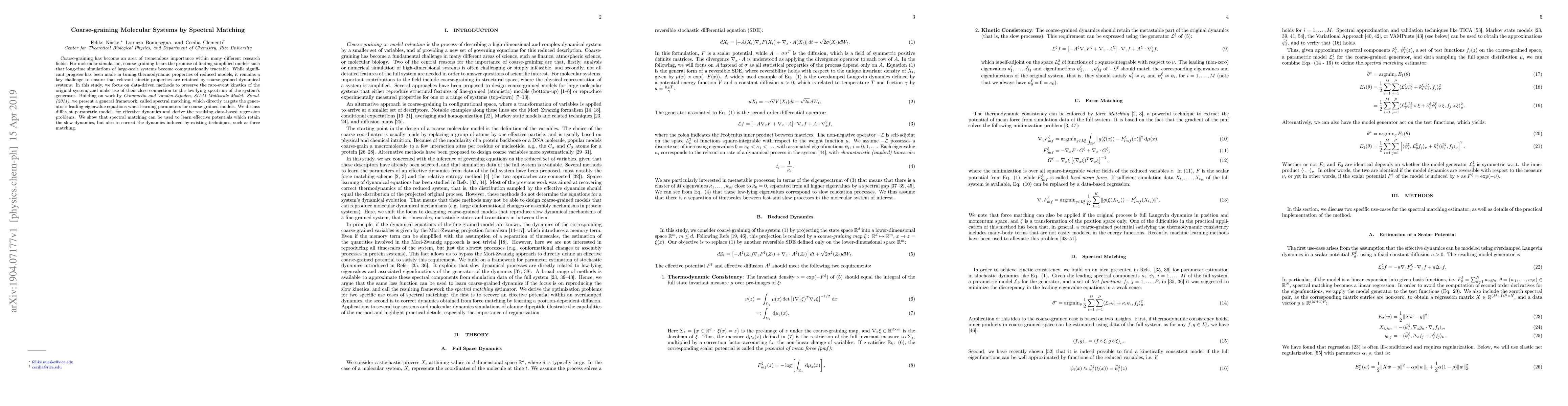 This paper introduces a spectral matching framework for coarse-graining molecular systems, focusing on preserving rare-event kinetics by targeting the low-lying spectrum of the system's generator, and discusses various parametric models for effective dynamics.