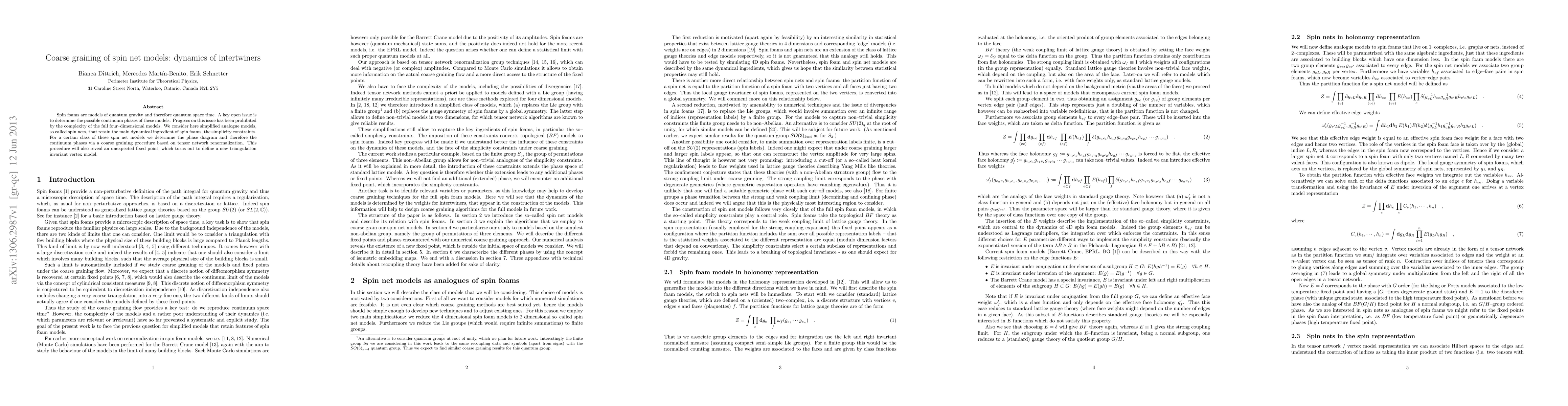 This paper investigates simplified spin net models of quantum gravity, determining their continuum phases through a coarse graining method based on tensor network renormalization. The study uncovers an unexpected fixed point that defines a new triangulation invariant vertex model.