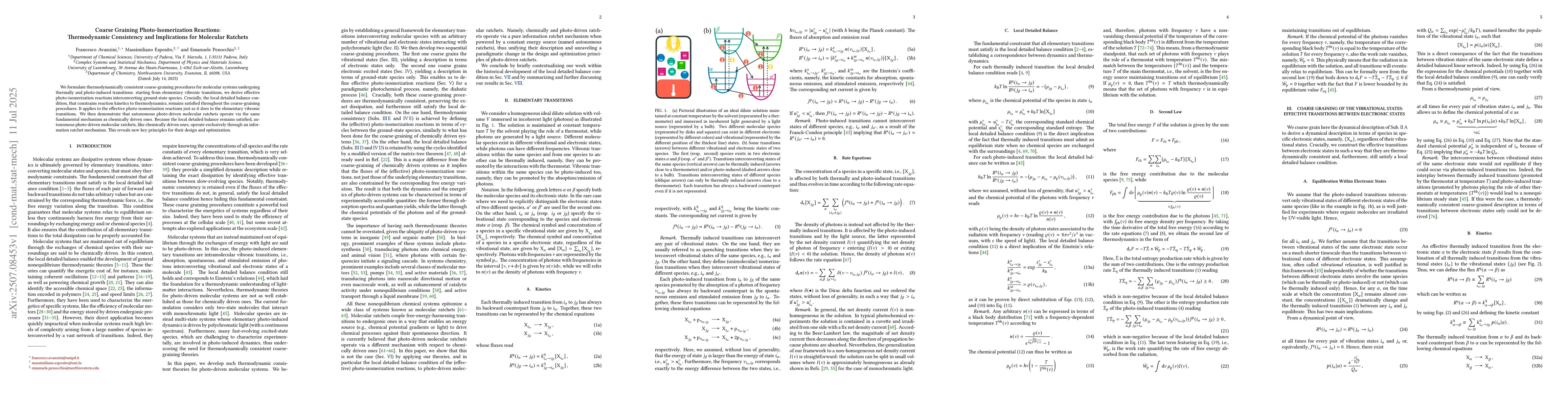 We formulate thermodynamically consistent coarse-graining procedures for molecular systems undergoing thermally and photo-induced transitions: starting from elementary vibronic transitions, we derive effective photo-isomerization reactions interconverting ground-state species. Crucially, the local detailed balance condition, that constrains reaction kinetics to thermodynamics, remains satisfied throughout the coarse-graining procedures. It applies to the effective photo-isomerization reactions just as it does to the elementary vibronic transitions. We then demonstrate that autonomous photo-driven molecular ratchets operate via the same fundamental mechanism as chemically driven ones. Because the local detailed balance remains satisfied, autonomous photo-driven molecular ratchets, like chemically driven ones, operate exclusively through an information ratchet mechanism. This reveals new key principles for their design and optimization.