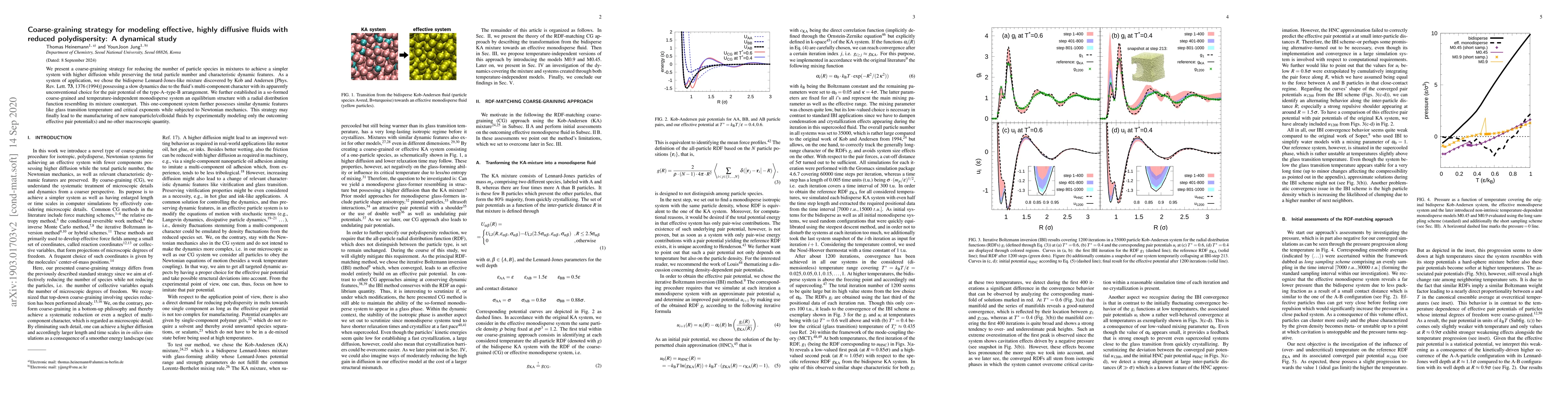 We present a coarse-graining strategy for reducing the number of particle species in mixtures to achieve a simpler system with higher diffusion while preserving the total particle number and characteristic dynamic features. As a system of application, we chose the bidisperse Lennard-Jones-like mixture discovered by Kob and Andersen [Phys. Rev. Lett. 73, 1376 (1994)] possessing a slow dynamics due to the fluid's multi-component character with its apparently unconventional choice for the pair potential of the type-A-type-B arrangement. We further established in a so-formed coarse-grained and temperature-independent monodisperse system an equilibrium structure with a radial distribution function resembling its mixture counterpart. This one-component system further possesses similar dynamic features like glass transition temperature and critical exponents while subjected to Newtonian mechanics. This strategy may finally lead to the manufacturing of new nanoparticle/colloidal fluids by experimentally modeling only the outcoming effective pair potential(s) and no other macroscopic quantity.