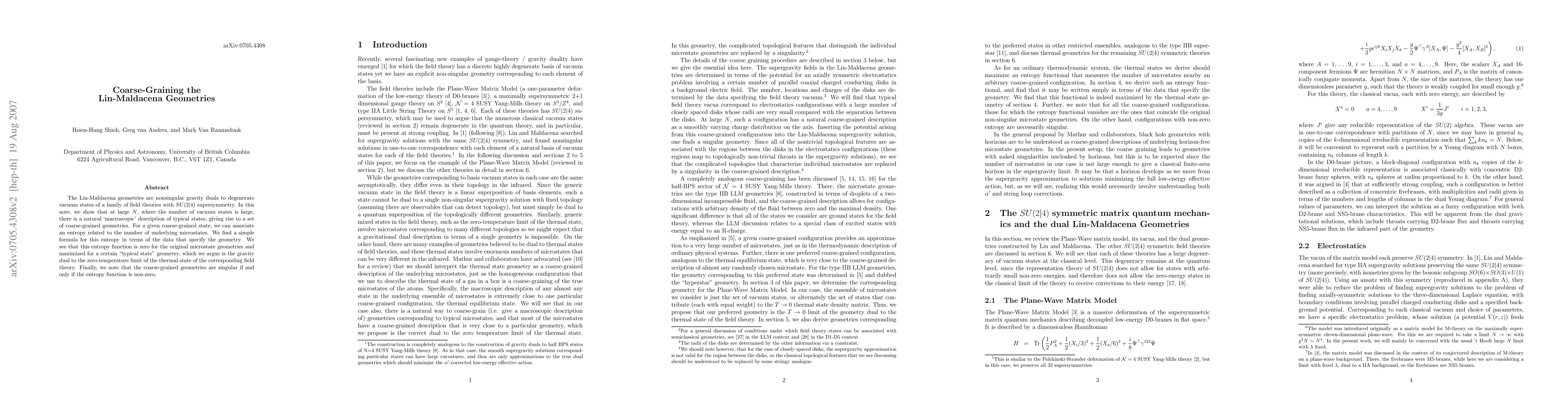 The Lin-Maldacena geometries are nonsingular gravity duals to degenerate vacuum states of a family of field theories with SU(2|4) supersymmetry. In this note, we show that at large N, where the number of vacuum states is large, there is a natural `macroscopic' description of typical states, giving rise to a set of coarse-grained geometries. For a given coarse-grained state, we can associate an entropy related to the number of underlying microstates. We find a simple formula for this entropy in terms of the data that specify the geometry. We see that this entropy function is zero for the original microstate geometries and maximized for a certain ``typical state'' geometry, which we argue is the gravity dual to the zero-temperature limit of the thermal state of the corresponding field theory. Finally, we note that the coarse-grained geometries are singular if and only if the entropy function is non-zero.
