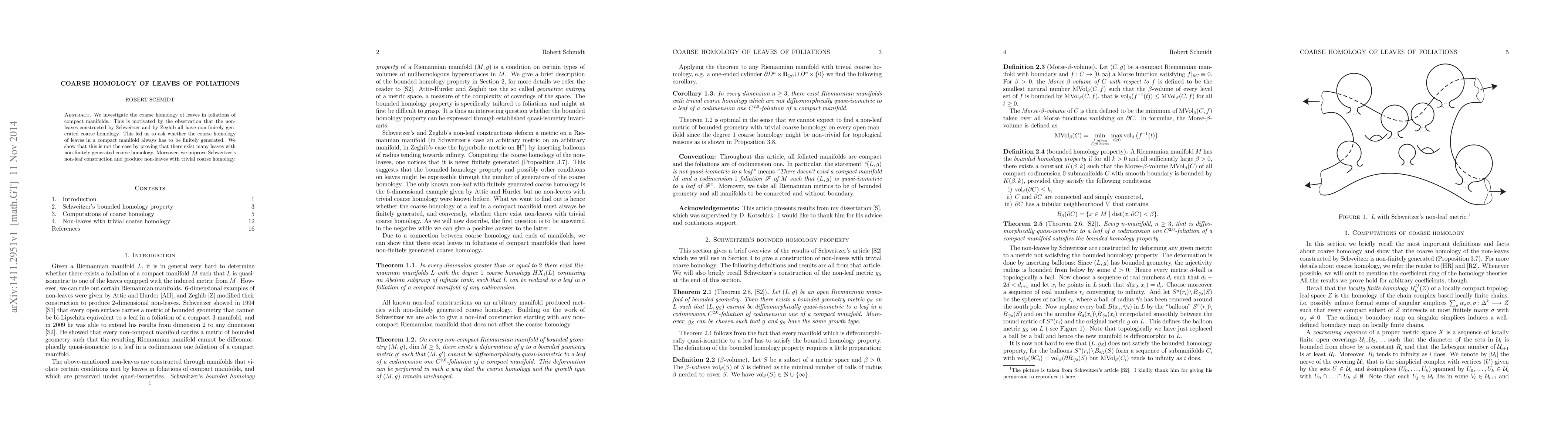 This paper explores the coarse homology of leaves in foliations of compact manifolds, demonstrating that not all leaves have finitely generated coarse homology. The authors construct examples of leaves with non-finitely generated coarse homology and improve upon previous non-leaf constructions to create non-leaves with trivial coarse homology.