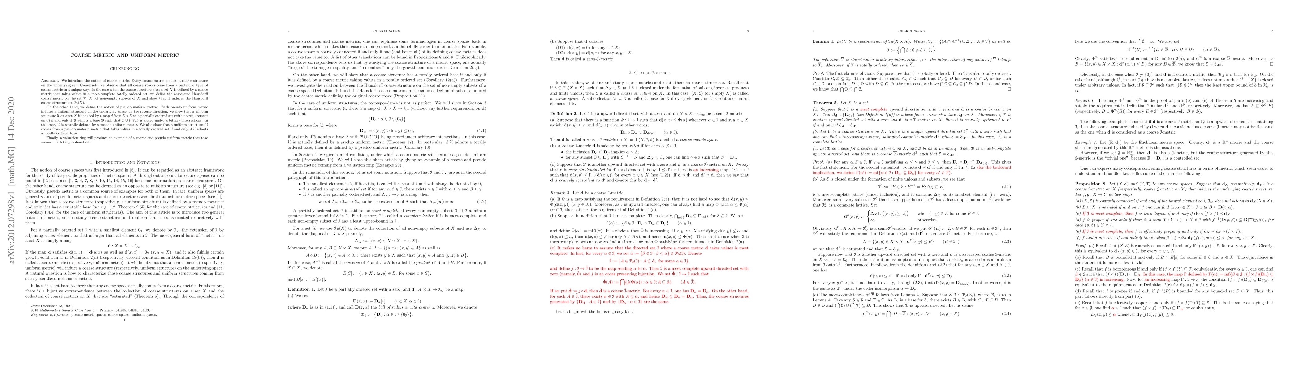 The use of a specific type of pseudometric to define the coarse structure was novel.