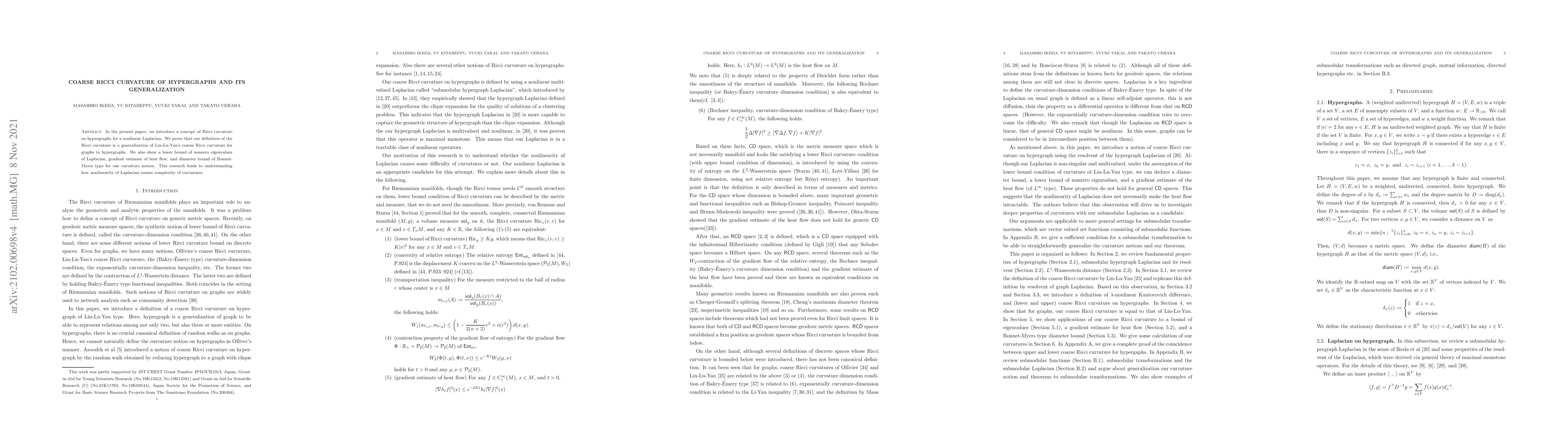 This paper introduces a concept of Ricci curvature on hypergraphs with nonlinear Laplacian, extending Lin-Lu-Yau coarse Ricci curvature to hypergraphs, and shows its implications on eigenvalue bounds, heat flow estimates, and diameter bounds.