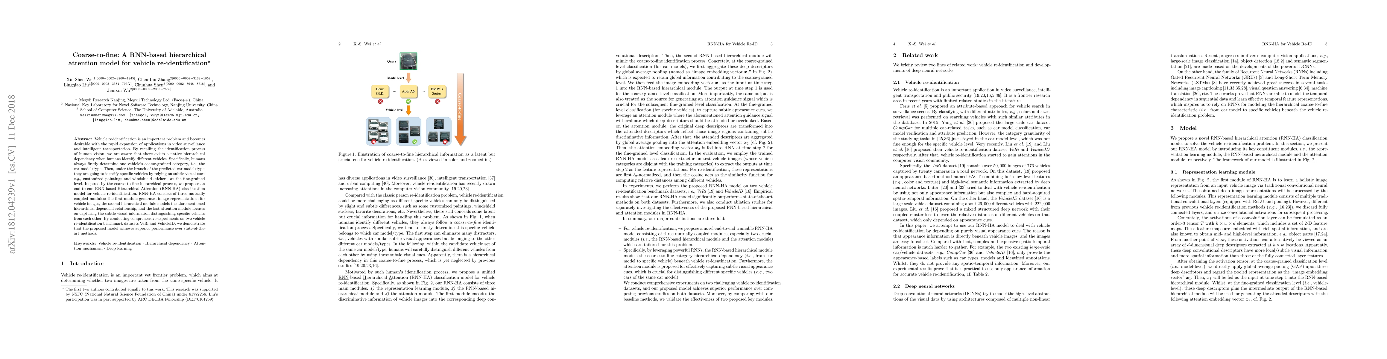 The paper proposes an RNN-based Hierarchical Attention (RNN-HA) model for vehicle re-identification, mimicking the human visual identification process. The model achieves superior performance by first categorizing vehicles at a coarse level and then distinguishing them at a fine level using subtle visual cues.
