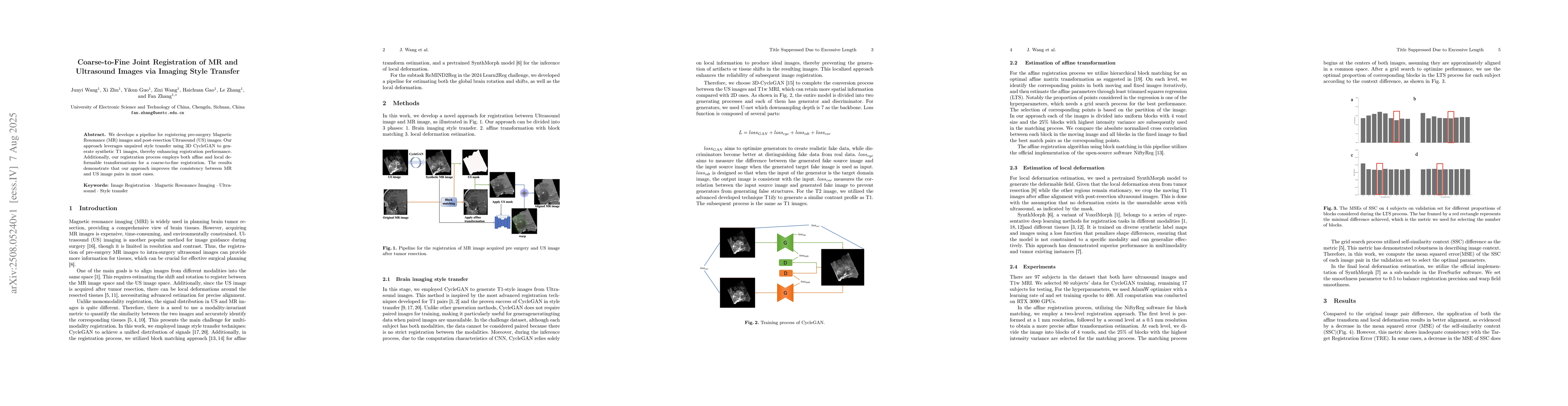 We developed a pipeline for registering pre-surgery Magnetic Resonance (MR) images and post-resection Ultrasound (US) images. Our approach leverages unpaired style transfer using 3D CycleGAN to generate synthetic T1 images, thereby enhancing registration performance. Additionally, our registration process employs both affine and local deformable transformations for a coarse-to-fine registration. The results demonstrate that our approach improves the consistency between MR and US image pairs in most cases.