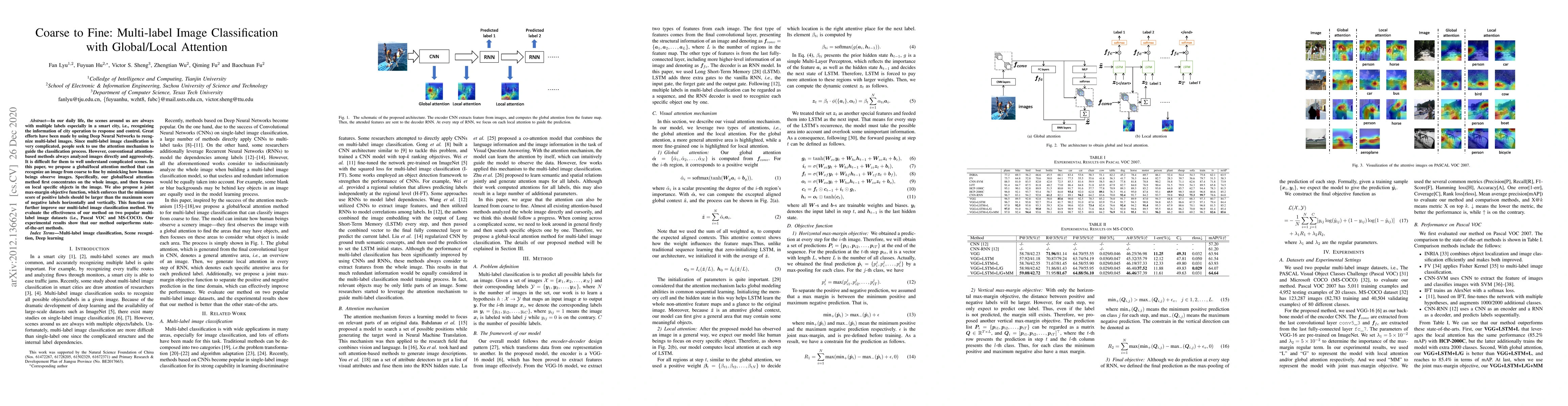 This paper proposes a global/local attention mechanism for multi-label image classification, mimicking human observation from coarse to fine detail. It employs a joint max-margin objective function to enhance classification accuracy, outperforming state-of-the-art methods on Pascal VOC and MS-COCO datasets.