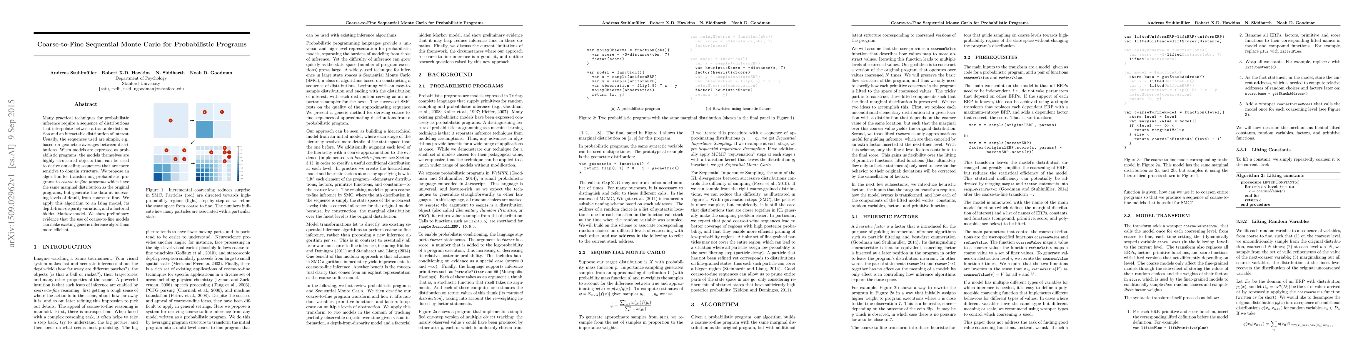 A new algorithm transforms probabilistic programs into coarse-to-fine models that generate data at increasing levels of detail, improving efficiency for existing inference algorithms in various applications like the Ising model and factorial hidden Markov models.