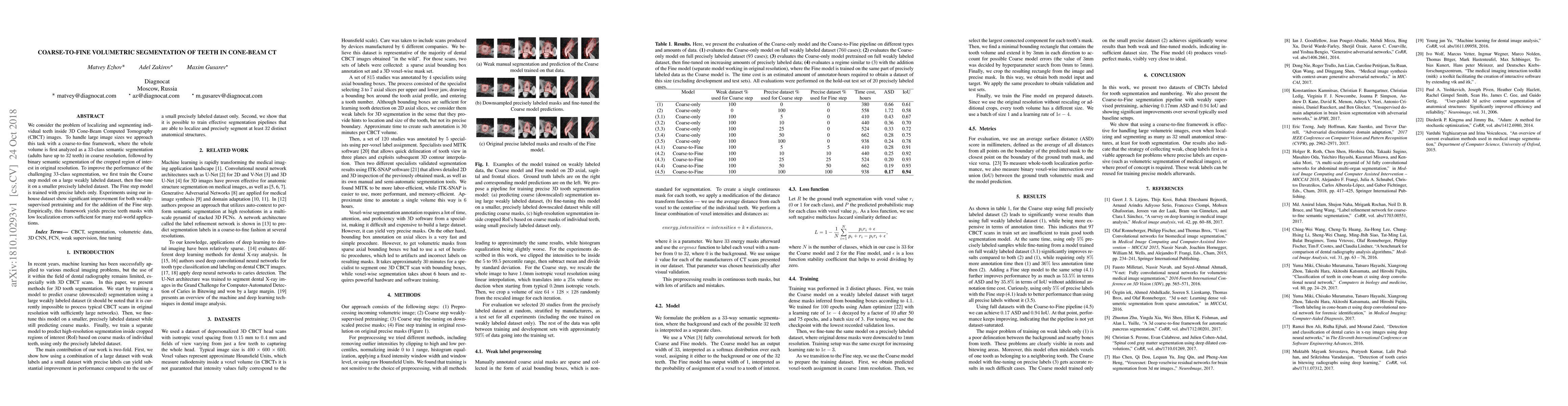 This research paper proposes a coarse-to-fine framework for segmenting teeth in 3D Cone-Beam CT images, achieving significant improvements through pretraining and fine-tuning, with precise tooth masks suitable for real-world applications.