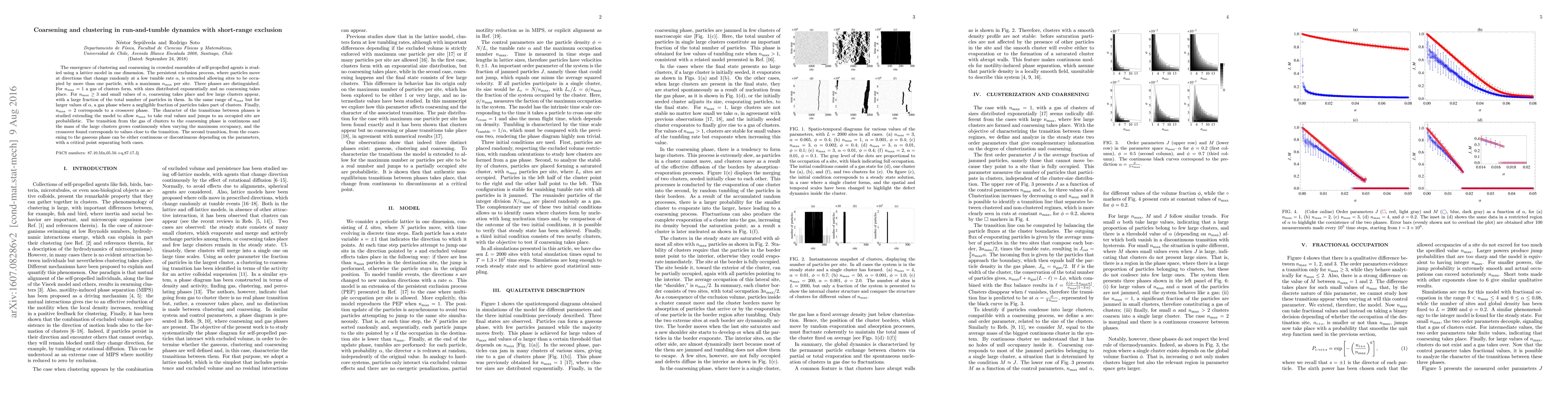 Research studies clustering and coarsening in crowded self-propelled agents using a lattice model with exclusion, finding three phases: gas of clusters, coarsening phase, and crossover phase.