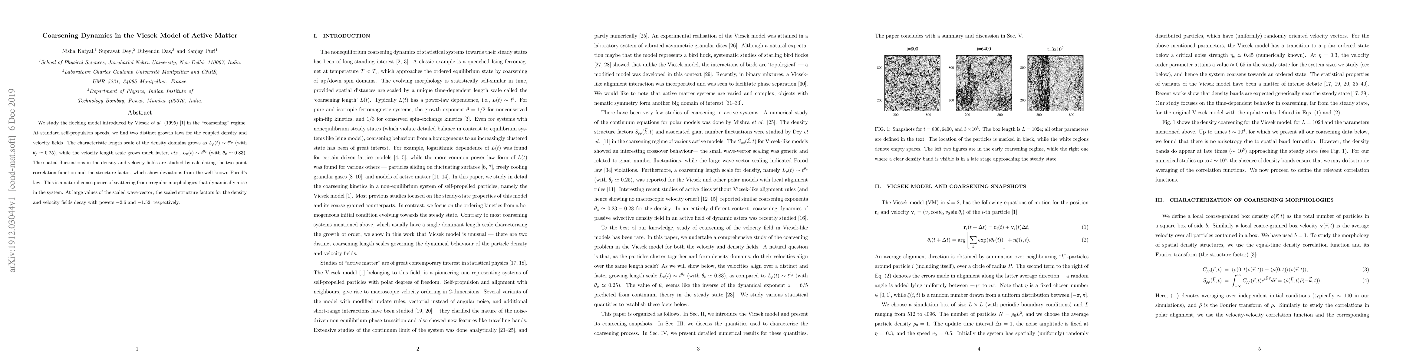 The research employs numerical simulations of the Vicsek model to study coarsening dynamics of density and velocity fields.