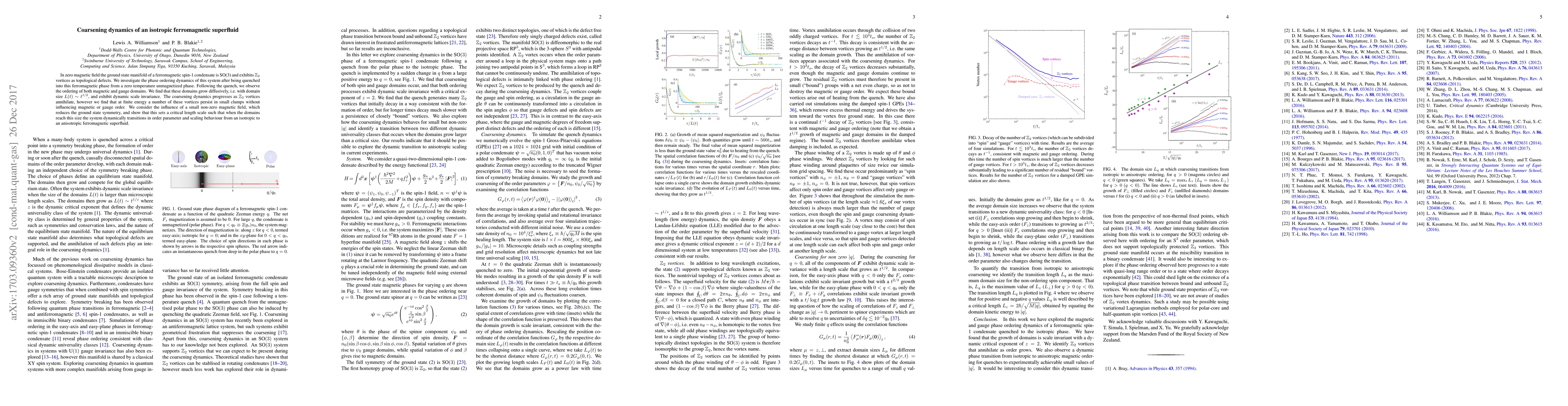 In zero magnetic field the ground state manifold of a ferromagnetic spin-1 condensate is SO(3) and exhibits $\mathbb{Z}_2$ vortices as topological defects. We investigate the phase ordering dynamics of this system after being quenched into this ferromagnetic phase from a zero temperature unmagnetized phase. Following the quench, we observe the ordering of both magnetic and gauge domains. We find that these domains grow diffusively, i.e. with domain size $L(t)\sim t^{1/2}$, and exhibit dynamic scale invariance. The coarsening dynamics progresses as $\mathbb{Z}_2$ vortices annihilate, however we find that at finite energy a number of these vortices persist in small clumps without influencing magnetic or gauge order. We consider the influence of a small non-zero magnetic field, which reduces the ground state symmetry, and show that this sets a critical length scale such that when the domains reach this size the system dynamically transitions in order parameter and scaling behaviour from an isotropic to an anisotropic ferromagnetic superfluid.