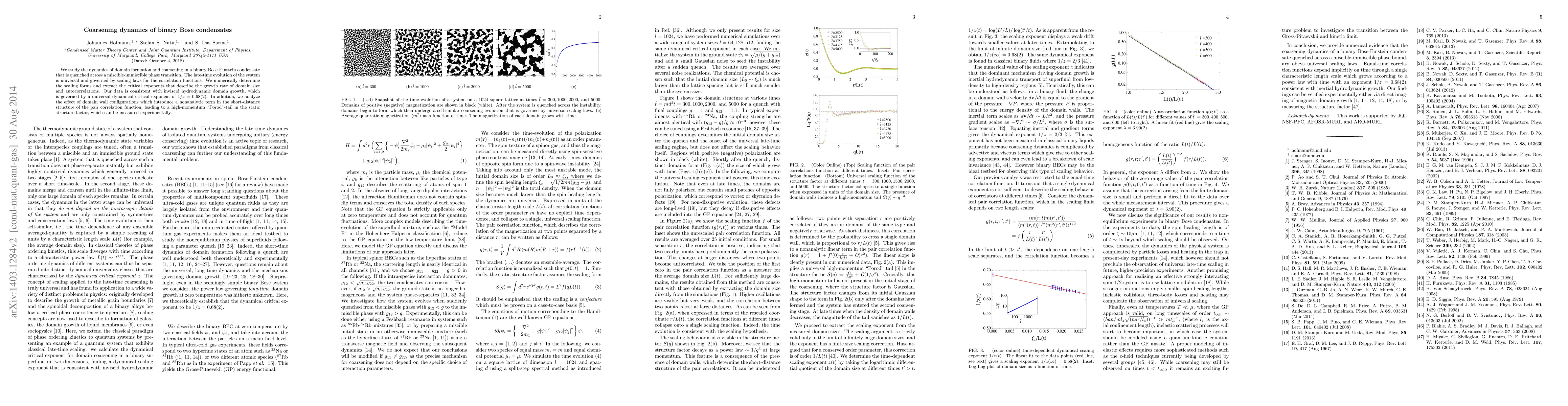 We study the dynamics of domain formation and coarsening in a binary Bose-Einstein condensate that is quenched across a miscible-immiscible phase transition. The late-time evolution of the system is universal and governed by scaling laws for the correlation functions. We numerically determine the scaling forms and extract the critical exponents that describe the growth rate of domain size and autocorrelations. Our data is consistent with inviscid hydrodynamic domain growth, which is governed by a universal dynamical critical exponent of $1/z = 0.68(2)$. In addition, we analyze the effect of domain wall configurations which introduce a nonanalytic term in the short-distance structure of the pair correlation function, leading to a high-momentum "Porod"-tail in the static structure factor, which can be measured experimentally.