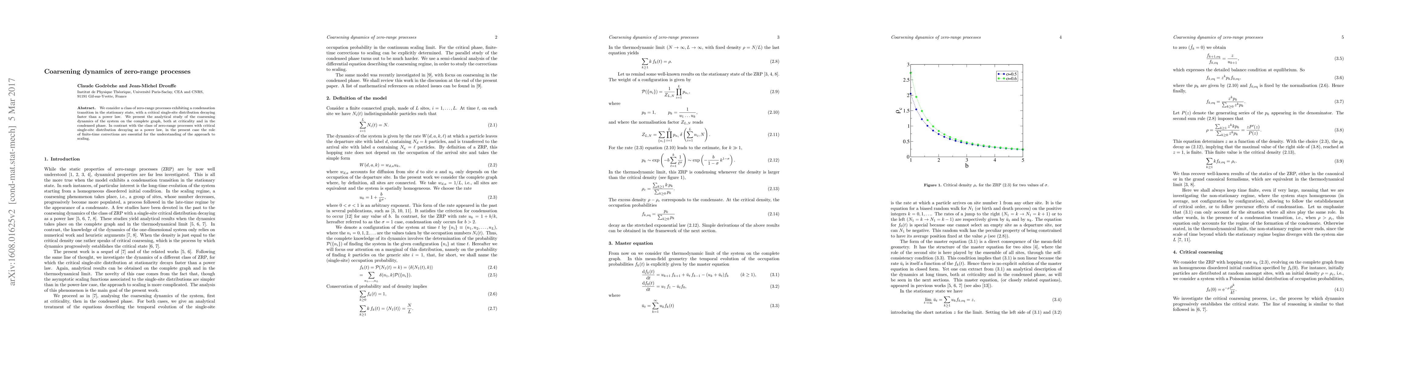 This paper analyzes the coarsening dynamics of zero-range processes with a critical single-site distribution decaying faster than a power law, focusing on the complete graph. Unlike traditional models, finite-time corrections play a crucial role in understanding the approach to scaling in this study.