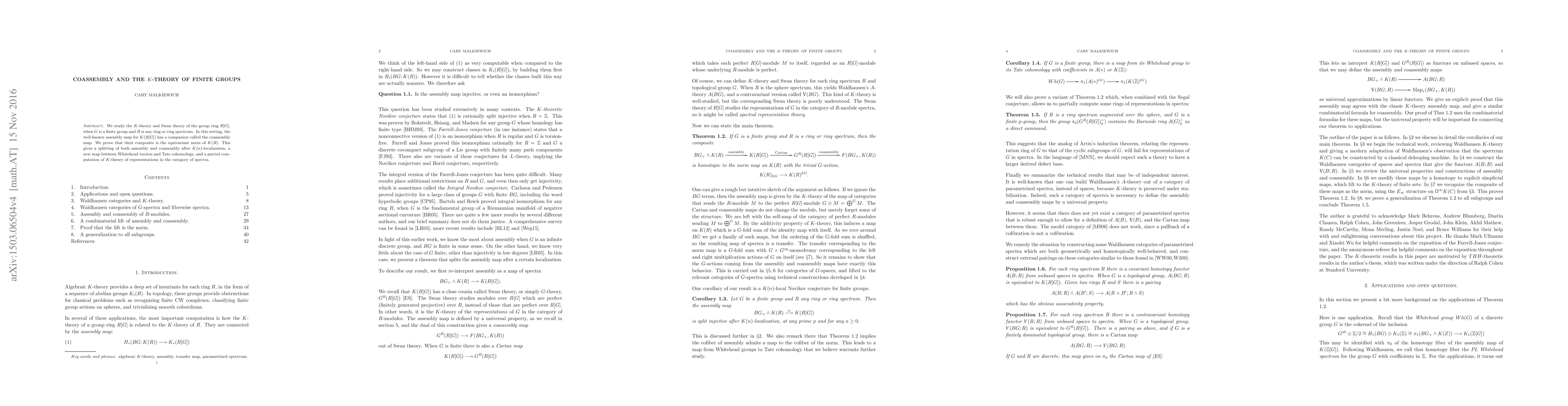 This paper investigates the $K$-theory and Swan theory of group rings $R[G]$ for finite groups $G$, introducing the coassembly map alongside the assembly map. The authors prove that the composite of these maps equals the equivariant norm of $K(R)$, leading to significant splitting results and a new map between Whitehead torsion and Tate cohomology.