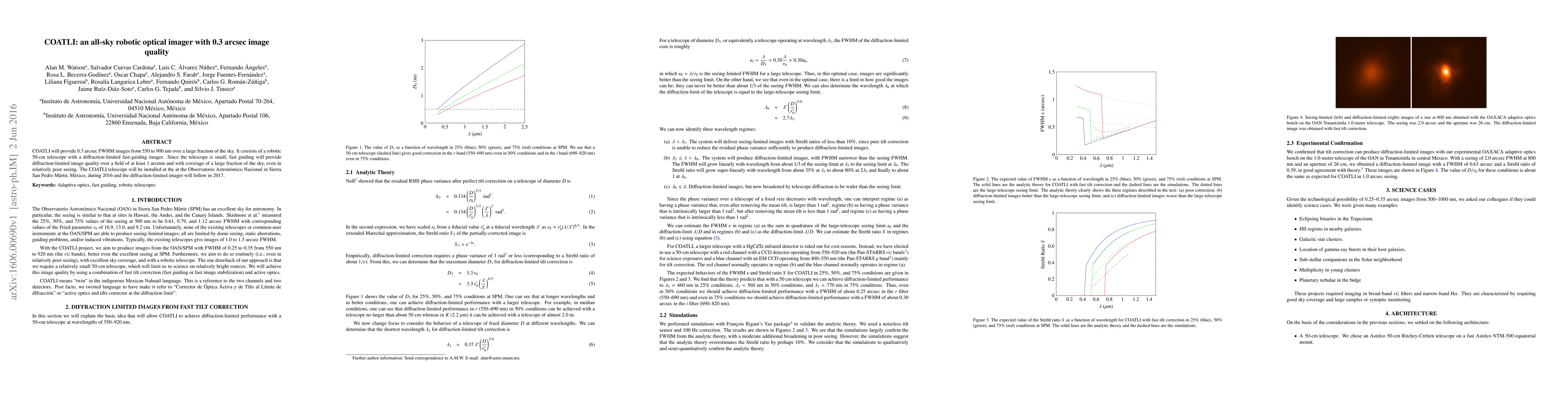 COATLI will provide 0.3 arcsec FWHM images from 550 to 900 nm over a large fraction of the sky. It consists of a robotic 50-cm telescope with a diffraction-limited fast-guiding imager. Since the telescope is small, fast guiding will provide diffraction-limited image quality over a field of at least 1 arcmin and with coverage of a large fraction of the sky, even in relatively poor seeing. The COATLI telescope will be installed at the at the Observatorio Astron\'omico Nacional in Sierra San Pedro M\'artir, M\'exico, during 2016 and the diffraction-limited imager will follow in 2017.