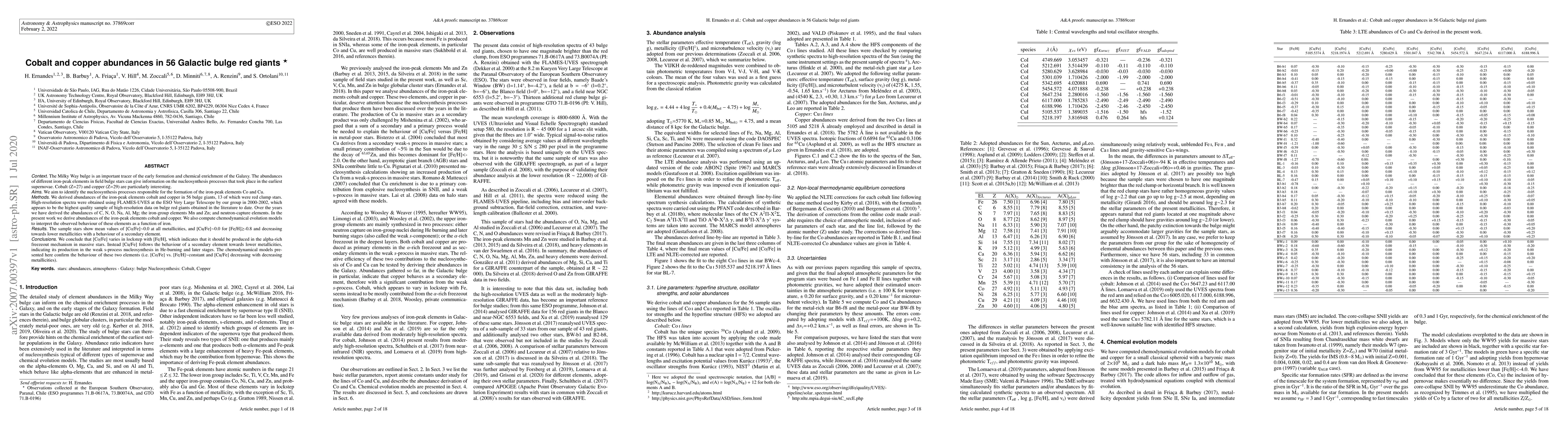 This study investigates cobalt and copper abundances in 56 Galactic bulge red giants, revealing that cobalt follows the iron-peak element pattern produced by the alpha-rich freezeout mechanism in massive stars, while copper shows a secondary element behavior, indicating production via the weak s-process in He-burning and later stages.