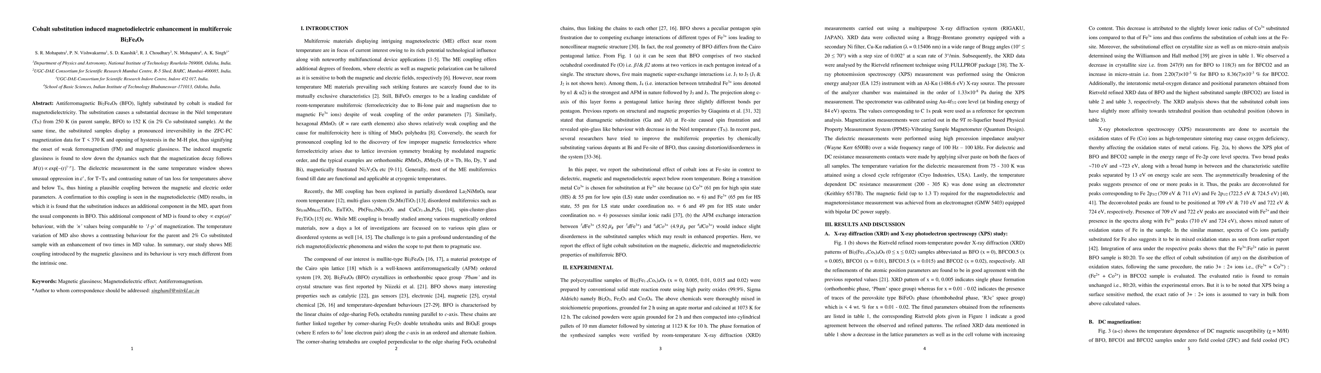 Antiferromagnetic Bi_{2}Fe_{4}O_{9} (BFO), lightly substituted by cobalt is studied for magnetodielectricity. The substitution causes a substantial decrease in the Neel temperature (T_N) from 250 K (in parent sample, BFO) to 152 K (in 2% Co substituted sample). At the same time, the substituted samples display a pronounced irreversibility in the ZFC-FC magnetization data for T $<$ 370 K and opening of hysteresis in the M-H plot, thus signifying the onset of weak ferromagnetism (FM) and magnetic glassiness. The induced magnetic glassiness is found to slow down the dynamics such that the magnetization decay follows. The dielectric measurement in the same temperature window shows unusual oppression in, for T$\sim$T_N and contrasting nature of tan loss for temperatures above and below T_N, thus hinting a plausible coupling between the magnetic and electric order parameters. A confirmation to this coupling is seen in the magnetodielectric (MD) results, in which it is found that the substitution induces an additional component in the MD, apart from the usual components in BFO. This additional component of MD is found to obey behaviour, with the n values being comparable to 1-p of magnetization. The temperature variation of MD also shows a contrasting behaviour for the parent and 2% Co substituted sample with an enhancement of two times in MD value. In summary, our study shows ME coupling introduced by the magnetic glassiness and its behaviour is very much different from the intrinsic one.