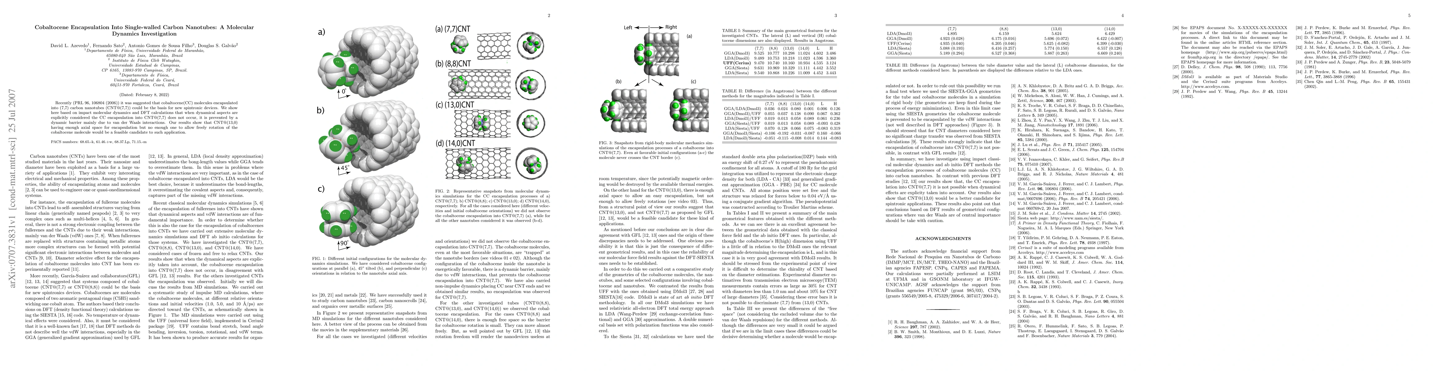 This study investigates the encapsulation of cobaltocene molecules into single-walled carbon nanotubes using molecular dynamics and DFT calculations. It finds that encapsulation into CNT@(7,7) is hindered by a dynamic barrier due to van der Waals forces, suggesting CNT@(13,0) as a more feasible option for spintronic devices due to its axial space.