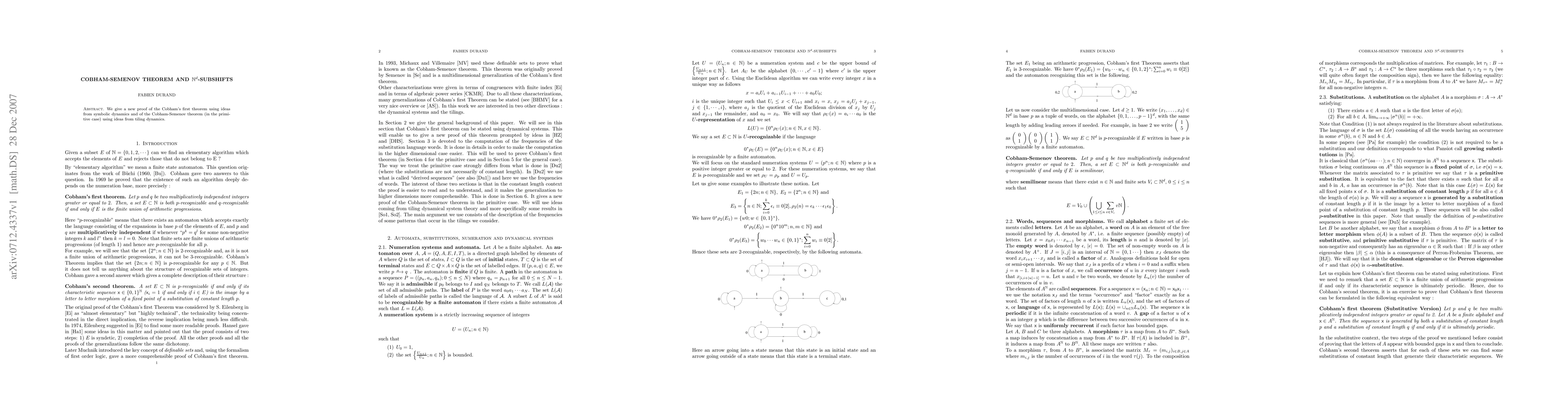 Summary: This paper presents novel proofs for Cobham's first theorem and the Cobham-Semenov theorem, employing concepts from symbolic and tiling dynamics respectively. The focus is on $\NN^d$-subshifts and their dynamic properties.