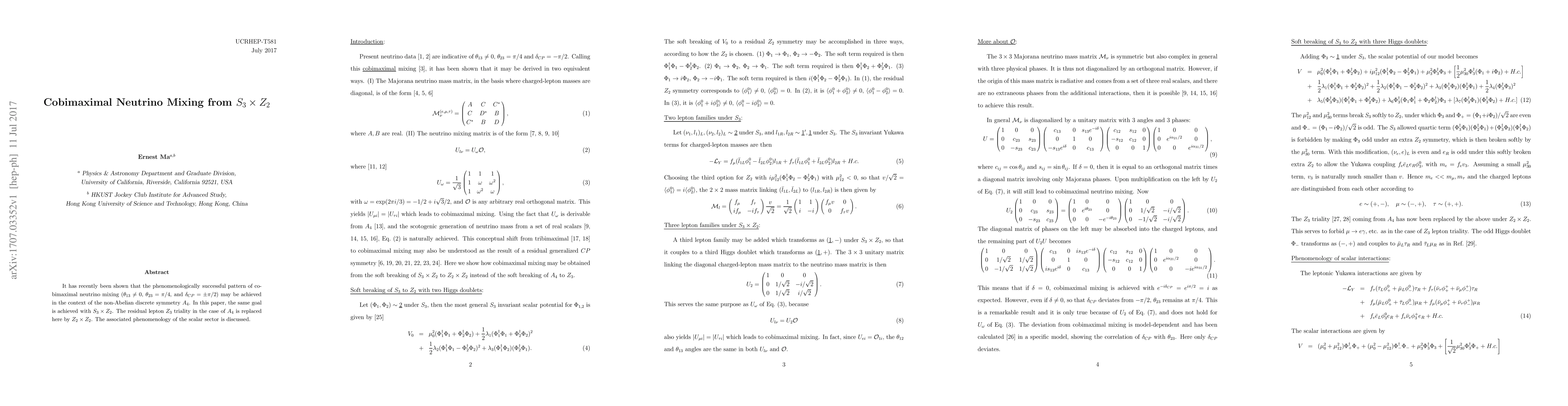 Researchers demonstrate that a specific pattern of neutrino mixing can be achieved with the non-Abelian discrete symmetry $S_3 imes Z_2$, building on previous work with $A_4$.